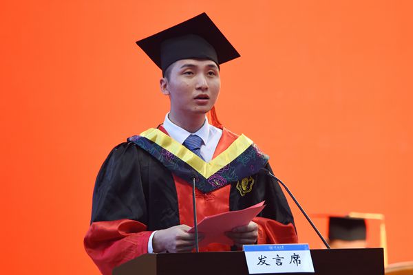 毕业研究生代表2021届地质工程专业博士王帅代表全体毕业研究生表达了对母校、老师和父母的崇高敬意和深深感激,表示将时刻铭记河海人所肩负的使命与责任,勇敢面对工作挑战,用实际行动践行“艰苦朴素,实事求是,严格要求,勇于探索”的开云电竞网校训,努力奋斗,为实现中华民族伟大复兴中国梦贡献自己的力量。