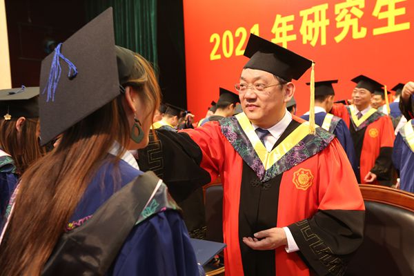 徐辉说,2021年时值“两个大局”交织,“两个一百年”交汇,“两个五年”交接,中国共产党迎来百年华诞,具有里程碑意义,全体毕业研究生要担负起实现中华民族伟大复兴中国梦的光荣使命,奋勇搏击,让青春奋斗力量与伟大复兴征程同频共振,在实现中国梦的伟大实践中书写精彩人生。