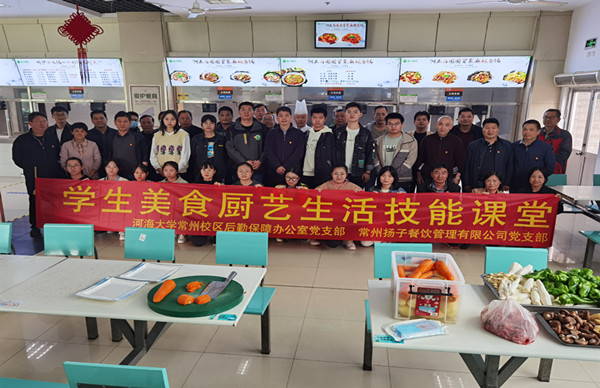 秋意已浓,天气渐冷,常州校区海苑餐厅一楼却一派热火朝天的忙碌景象。10月22日,常州校区党工委后勤办党支部和扬子餐饮党支部共同举办“学生美食厨艺生活技能课堂”活动。两支部党员同志与学生们一起洗净双手、从配菜、切菜到炒菜,撸起袖子体验厨艺。师生积极互动,现场气氛热烈,同学们不仅学习观摩并亲自动手体验烹饪的魅力,而且品尝了美味的劳动成果。同学们纷纷表示,通过此次“美食厨艺生活技能课堂”的学习,德技并修,一方面亲身体验了美食厨艺,提高了自身的动手能力,丰富了生活技能,树立了“懂生活、会生活、管生活、爱生活”价值观念;另一方面深切感受到了后勤师傅们爱岗敬业、任劳任怨的辛勤劳动,在这堂生活技能课堂上深深体会到“柴米油盐中有大智慧,平凡岗位上有大感动,生活之中有大美大爱”。