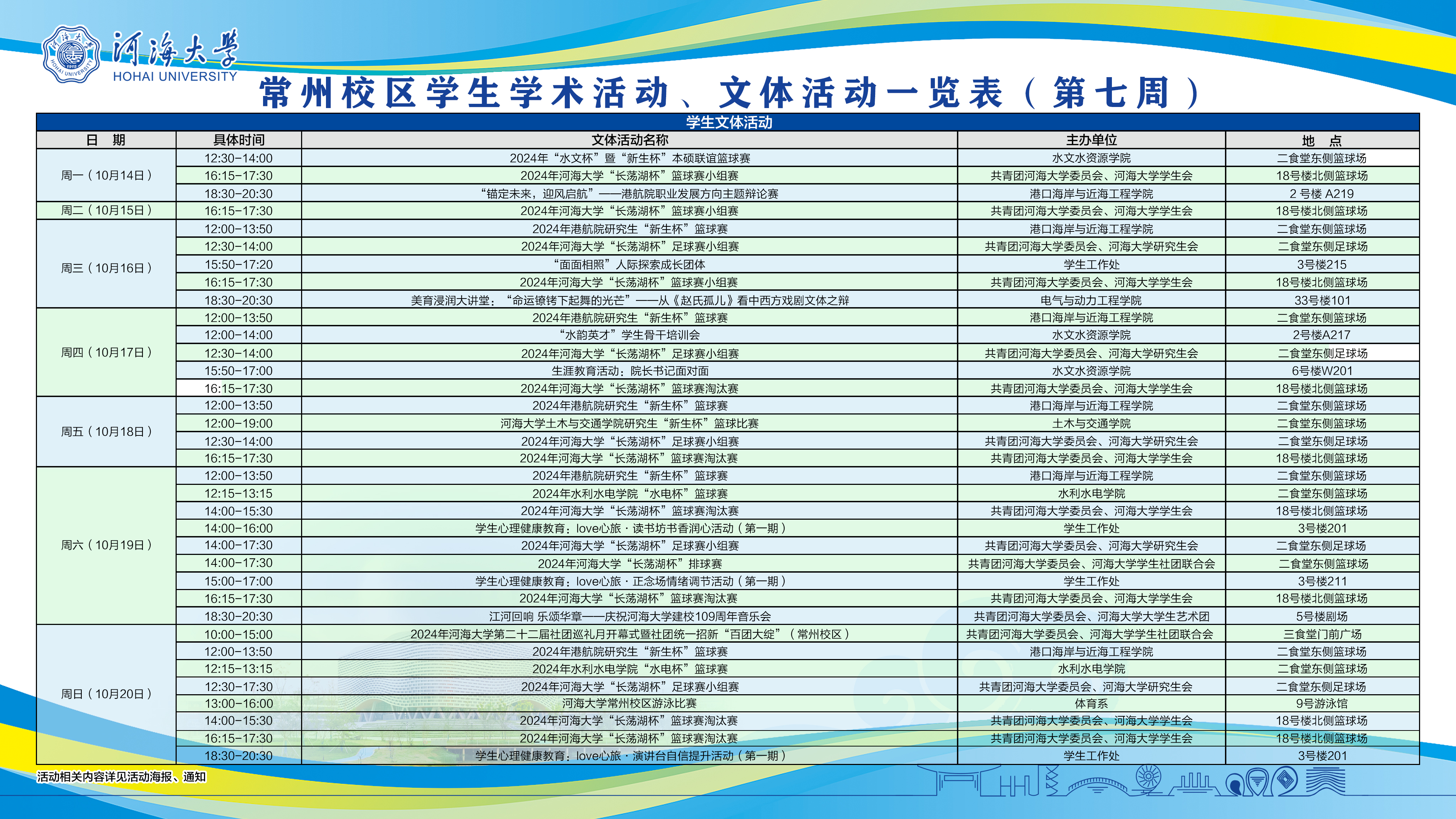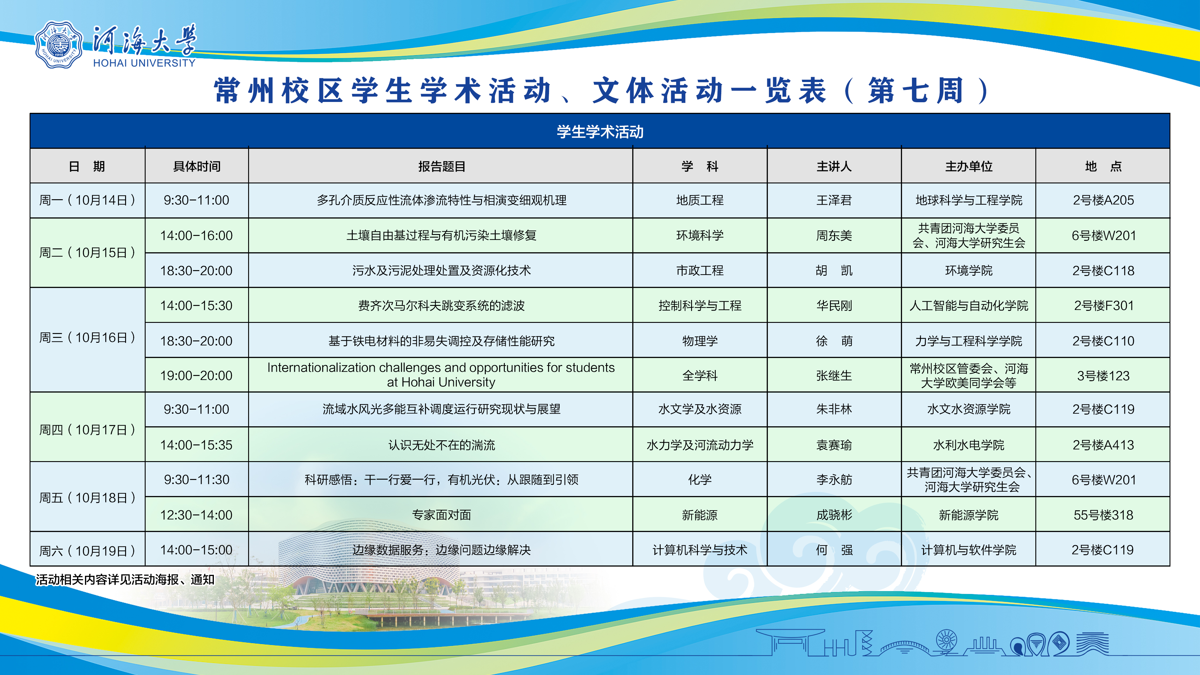 常州校区学生学术活动、文体活动相关安排(第7周)