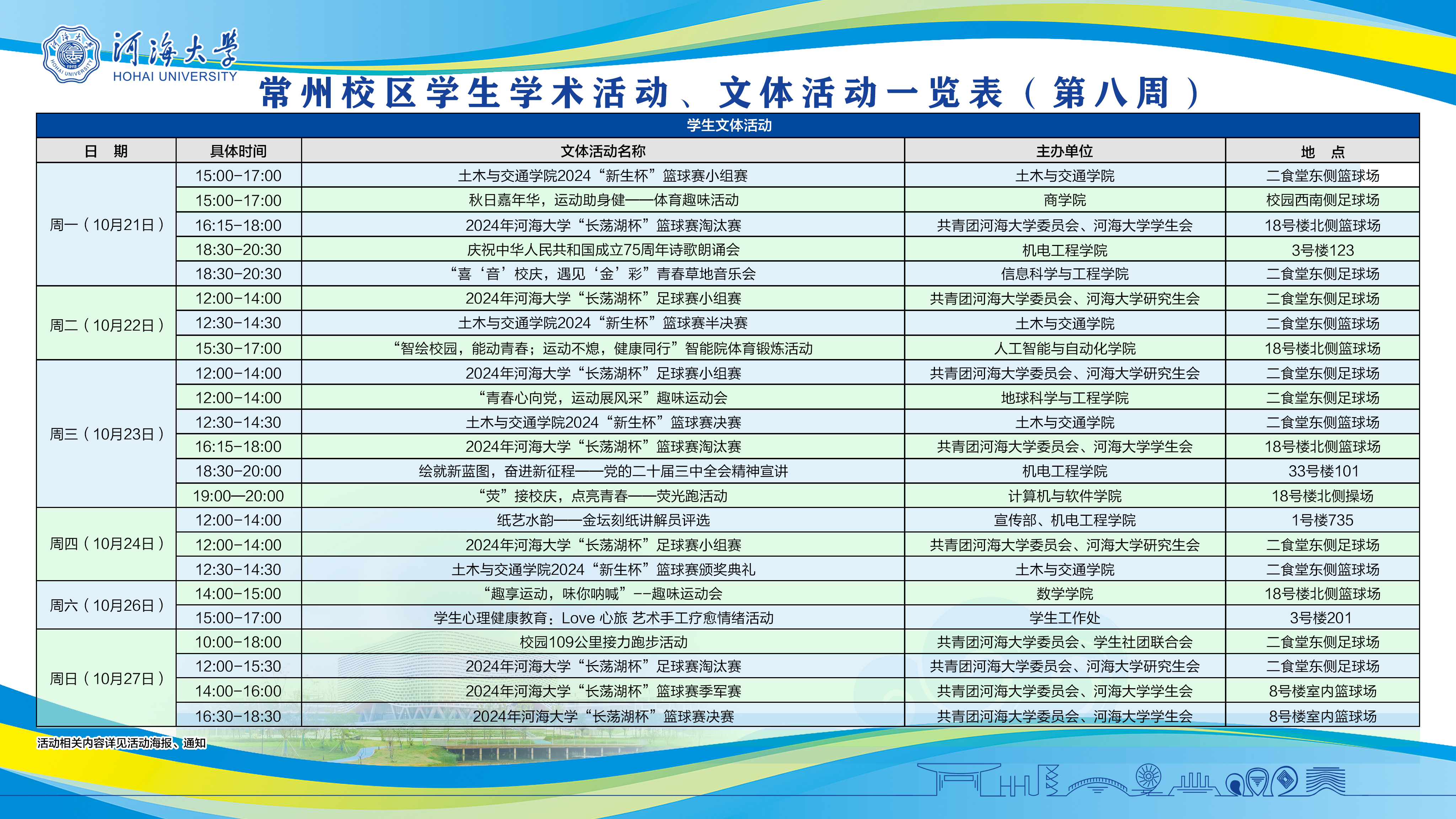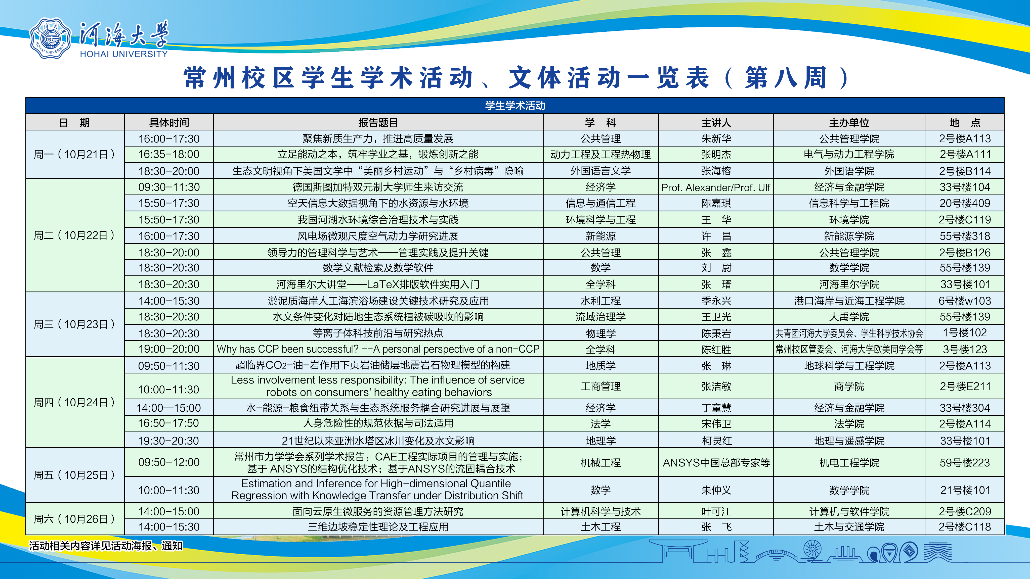 常州校区学生学术活动、文体活动相关安排(第8周)