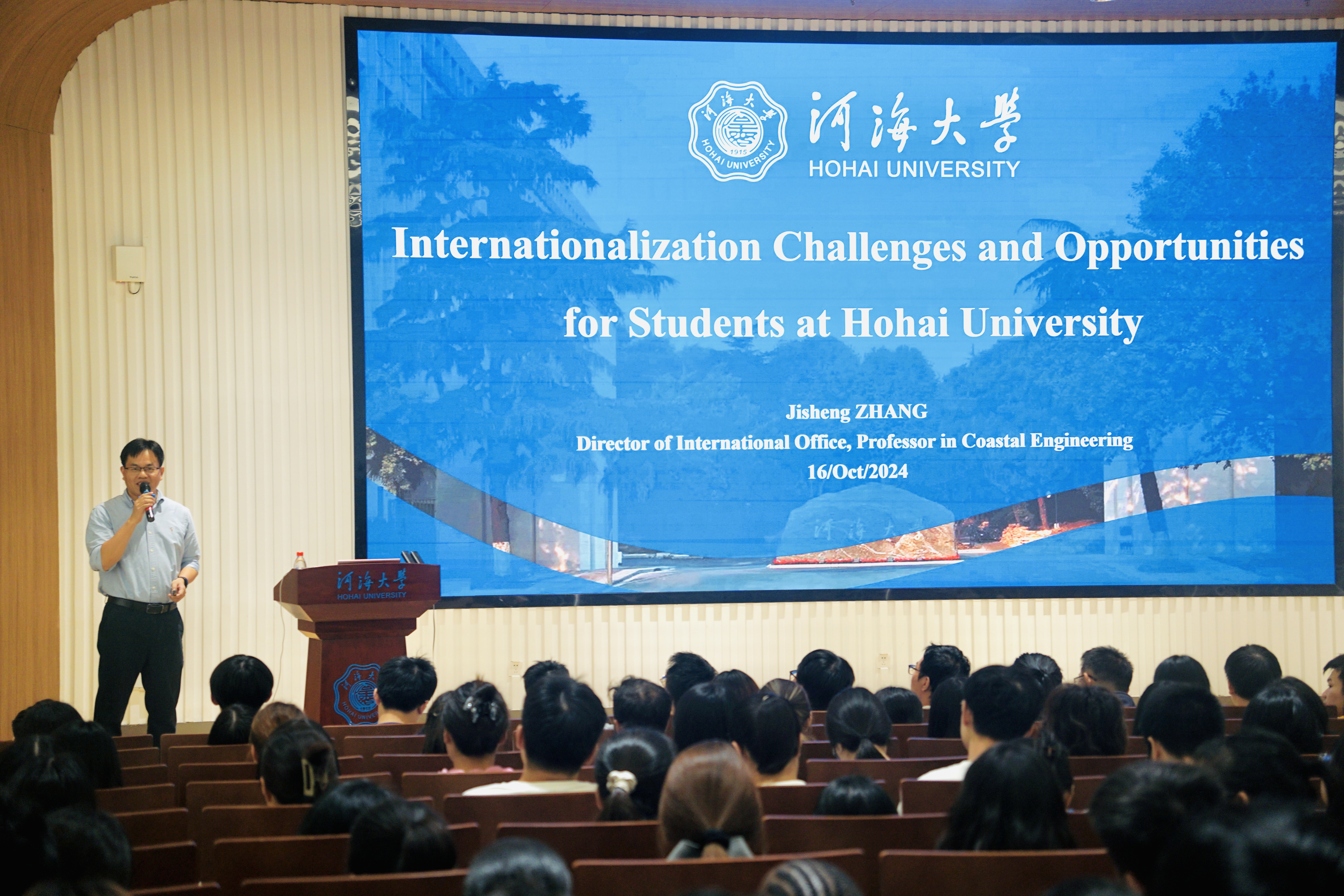 2024年10月16日晚上,在开云电竞网常州校区3号楼123报告厅,我校国际合作处处长张继生教授为同学们作了题为《开云电竞网学生国际化机遇与挑战》的学术报告。