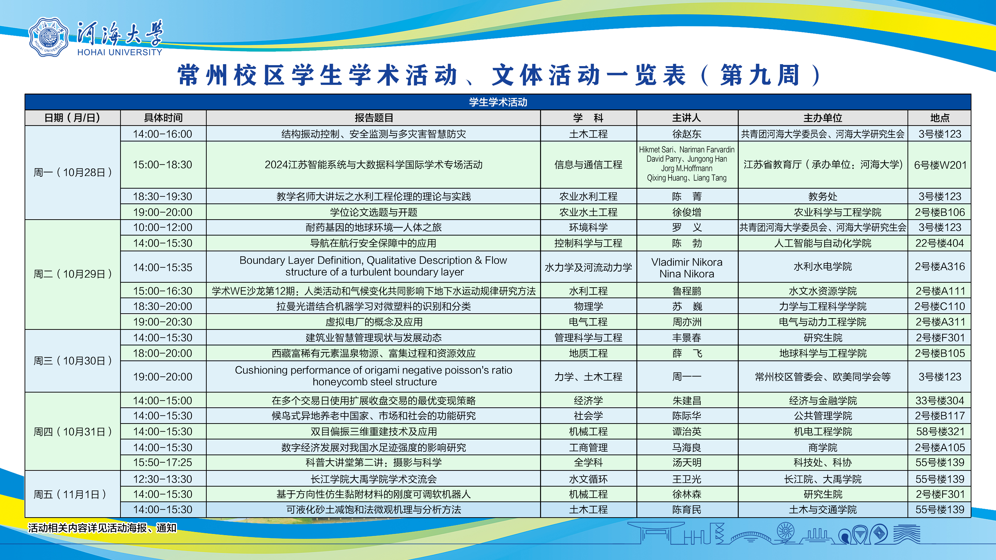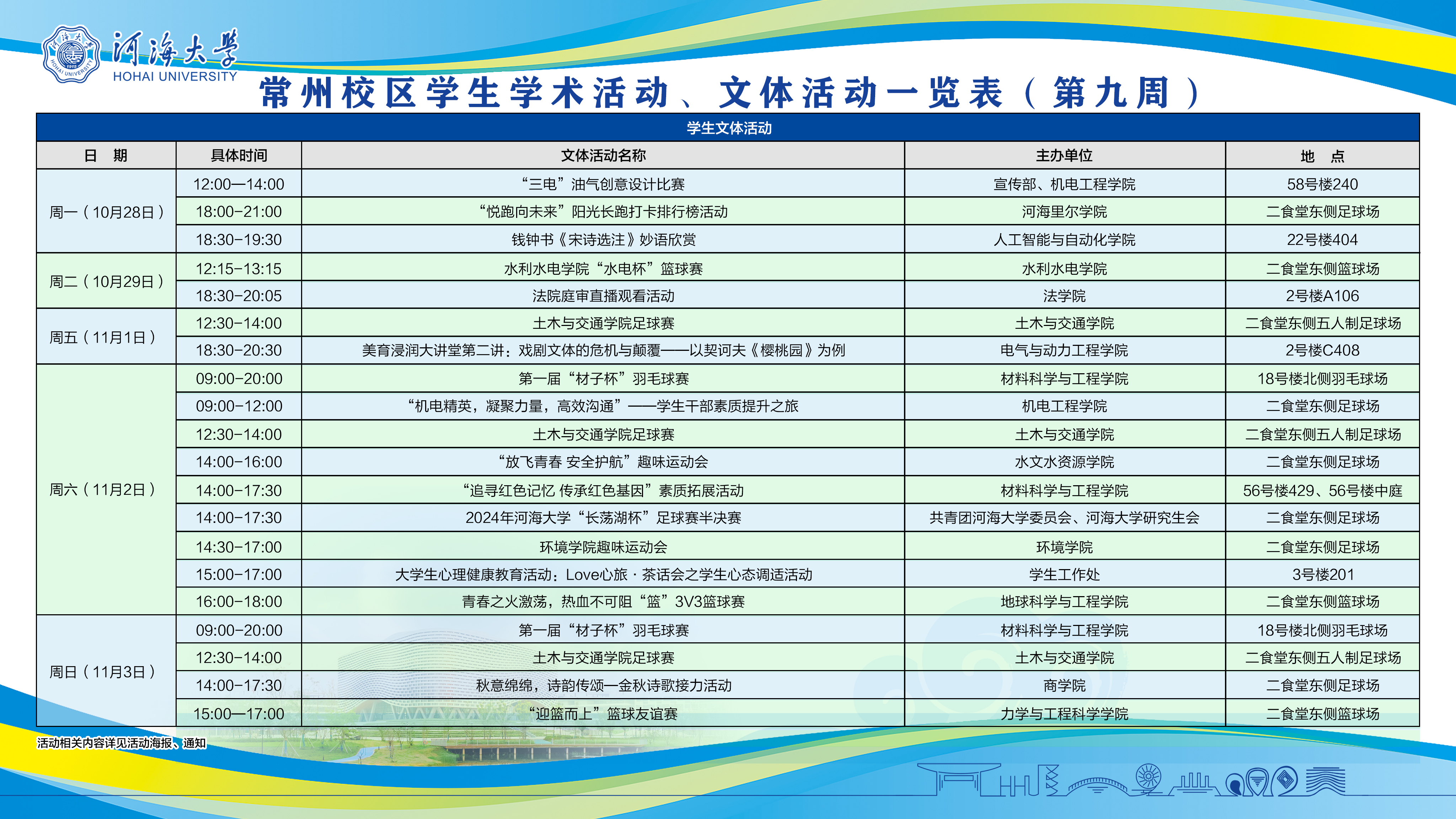 常州校区学生学术活动、文体活动相关安排(第9周)