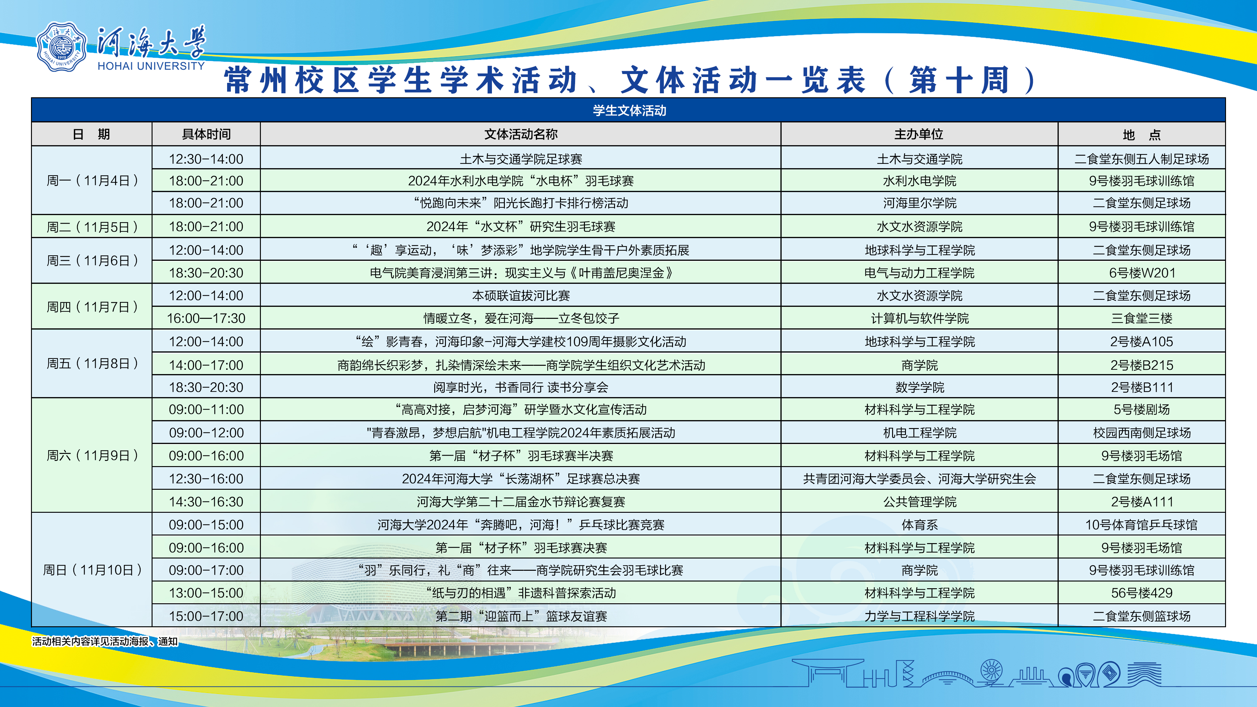 常州校区学生学术活动、文体活动相关安排(第10周)