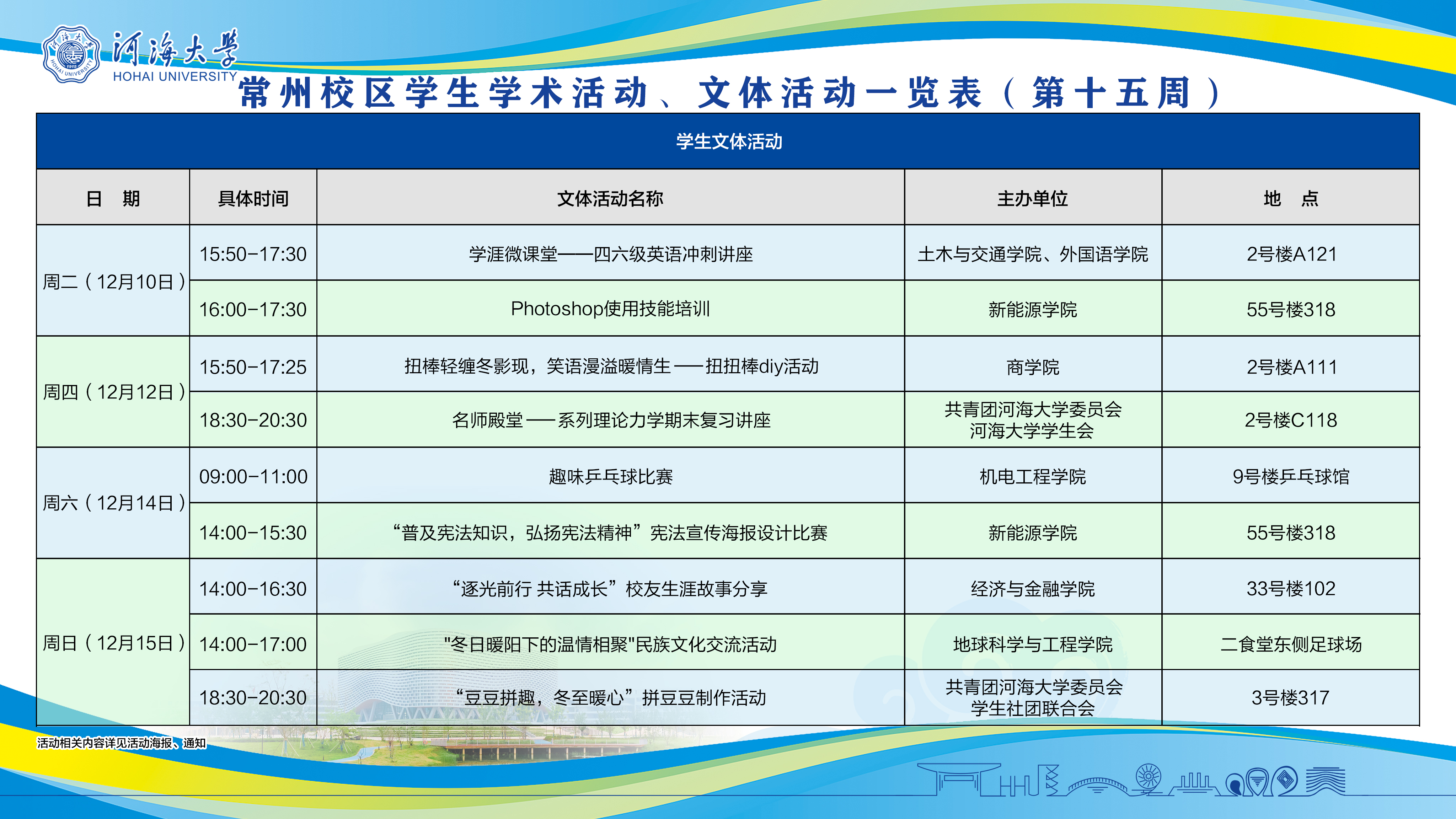 常州校区学生学术活动、文体活动相关安排(第15周)
