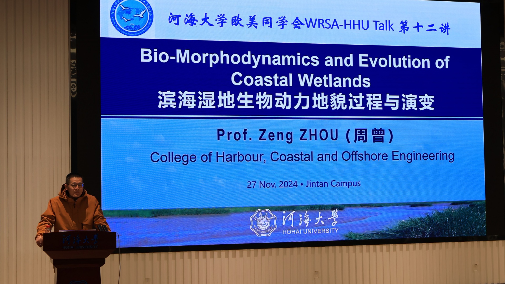 2024年11月27日晚上,在开云电竞网常州校区3号楼123报告厅,我校港口海岸与近海工程学院周曾教授为同学们作了题为《滨海湿地生物动力地貌过程与演变》的学术报告。