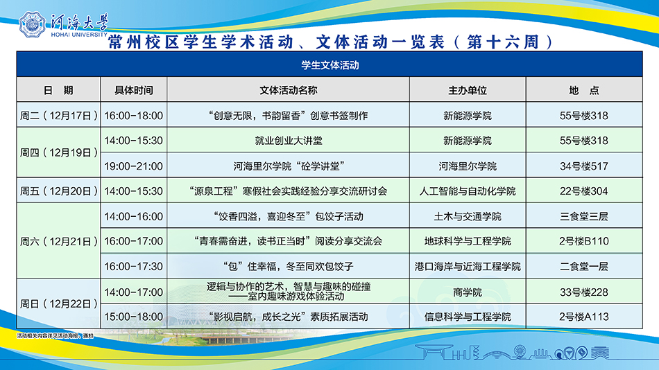 常州校区学生学术活动、文体活动相关安排(第16周)