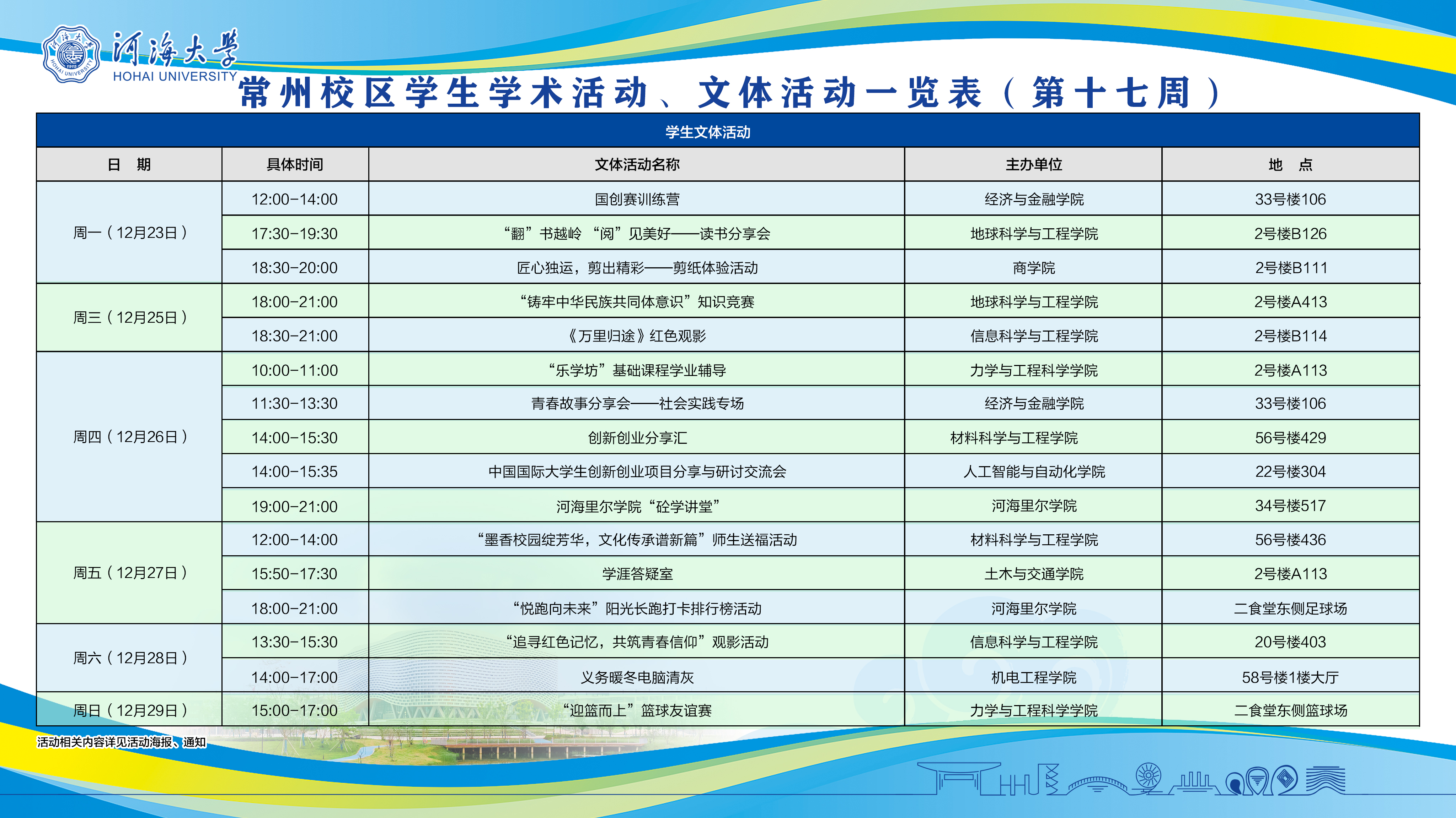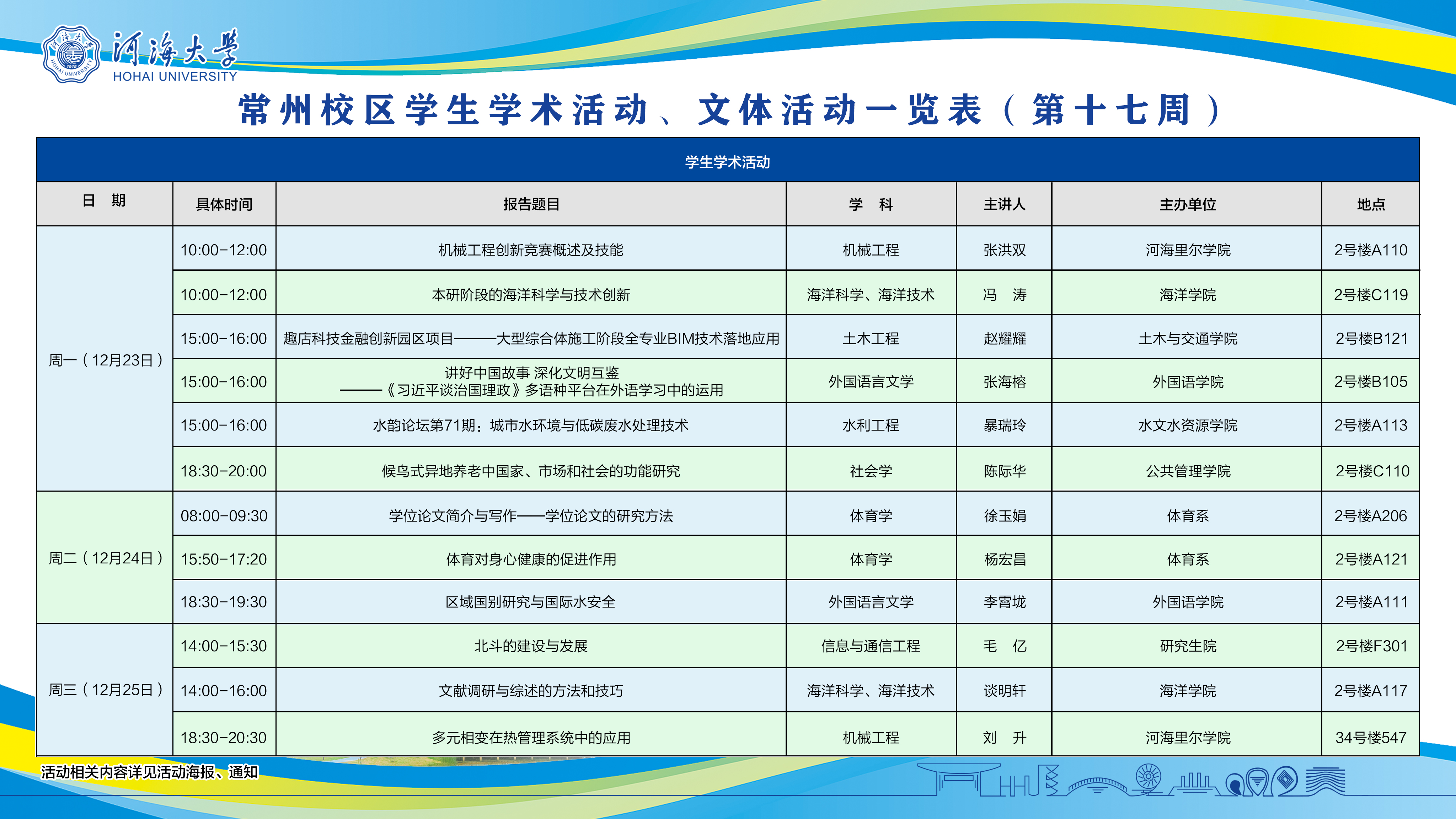 常州校区学生学术活动、文体活动相关安排(第17周)