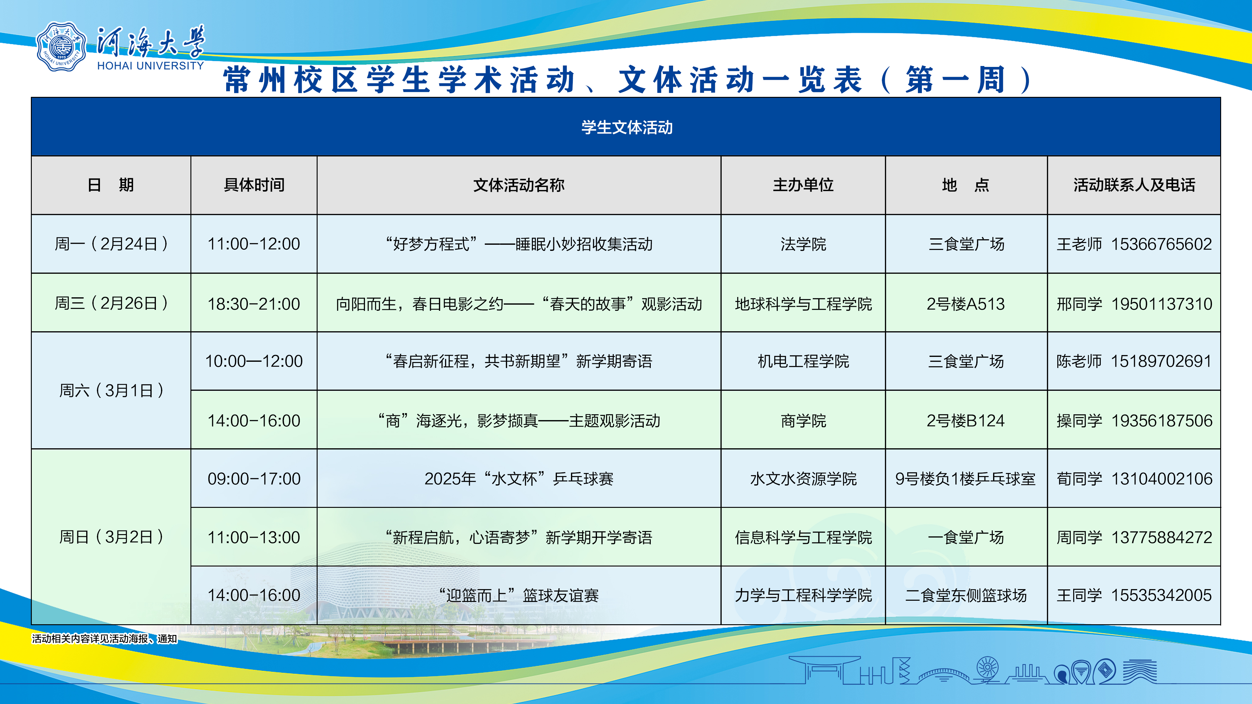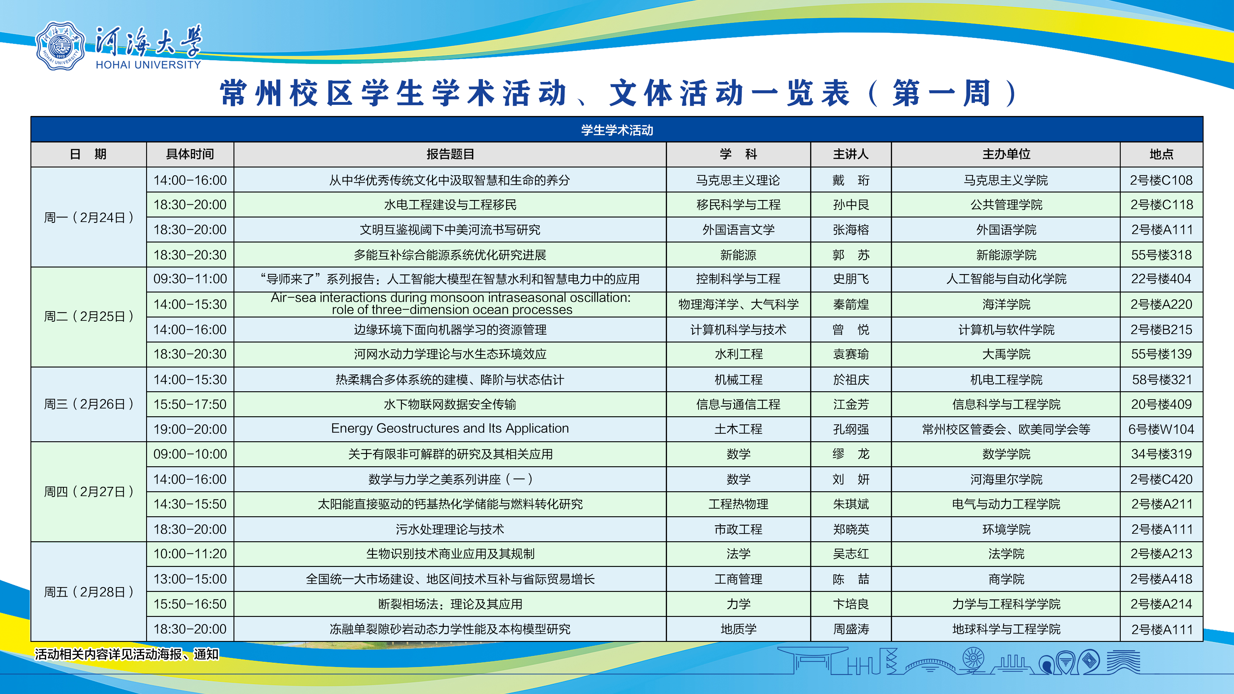 常州校区学生学术活动、文体活动相关安排(第1周)
