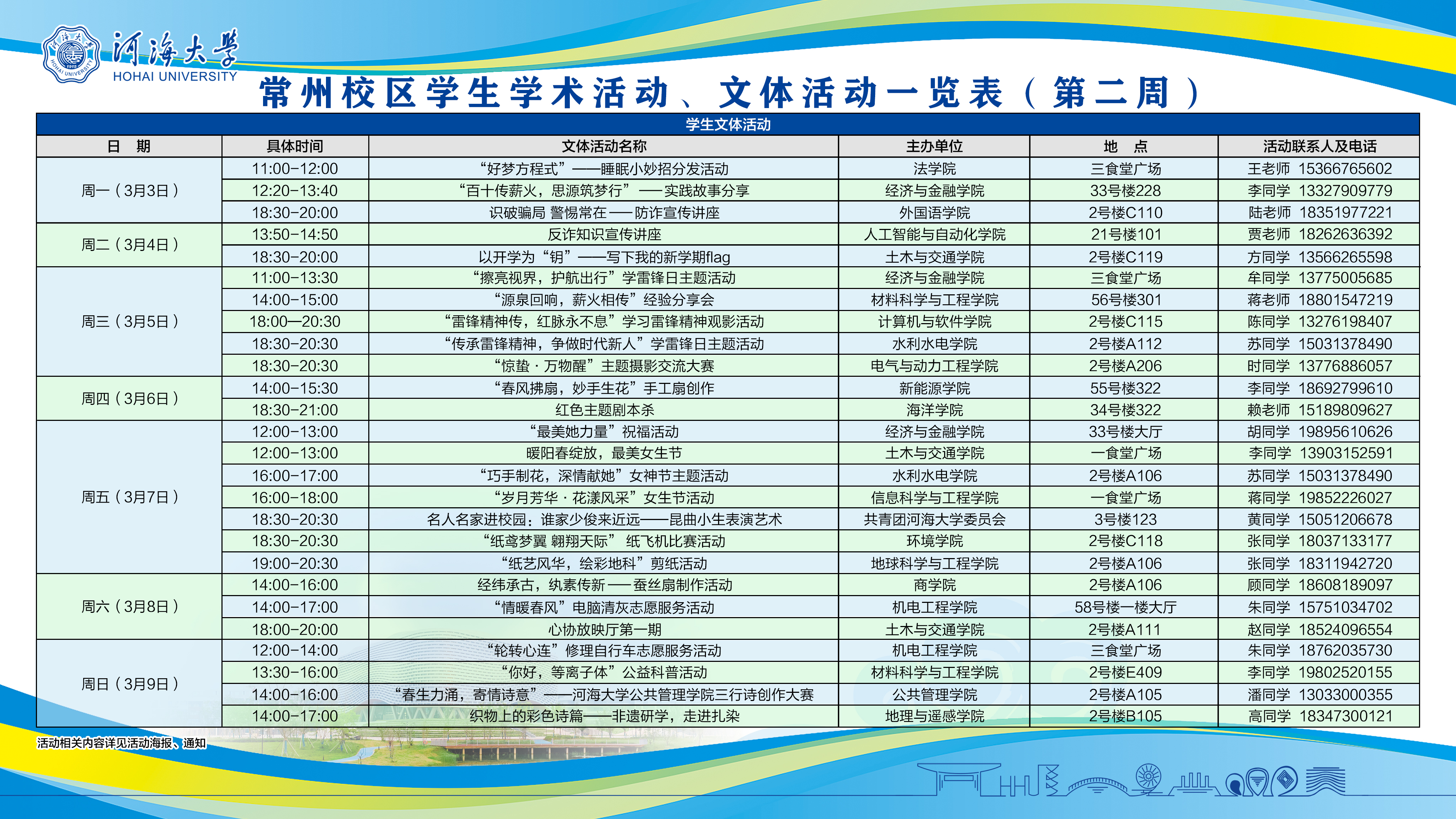 常州校区学生学术活动、文体活动相关安排(第2周)