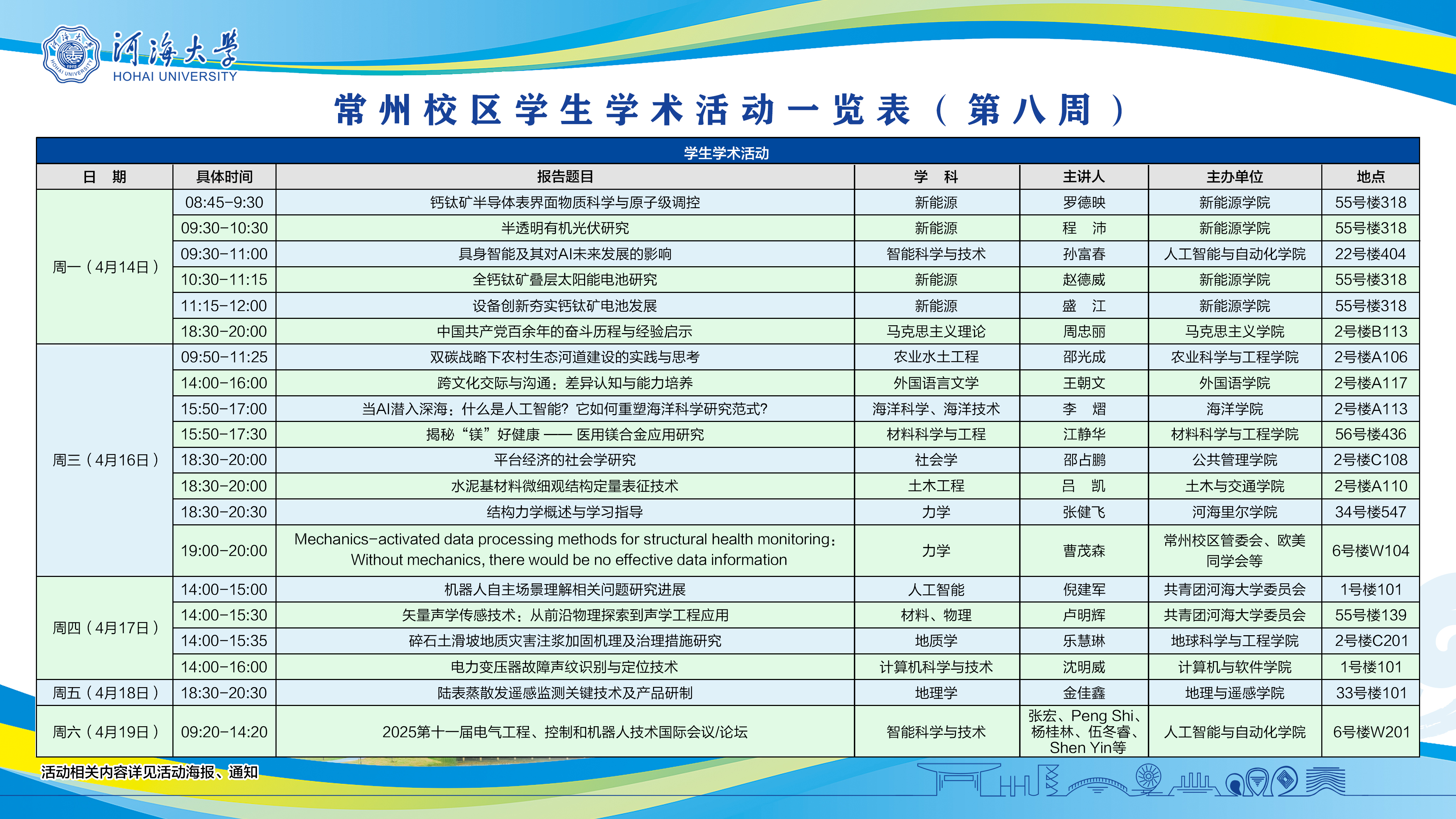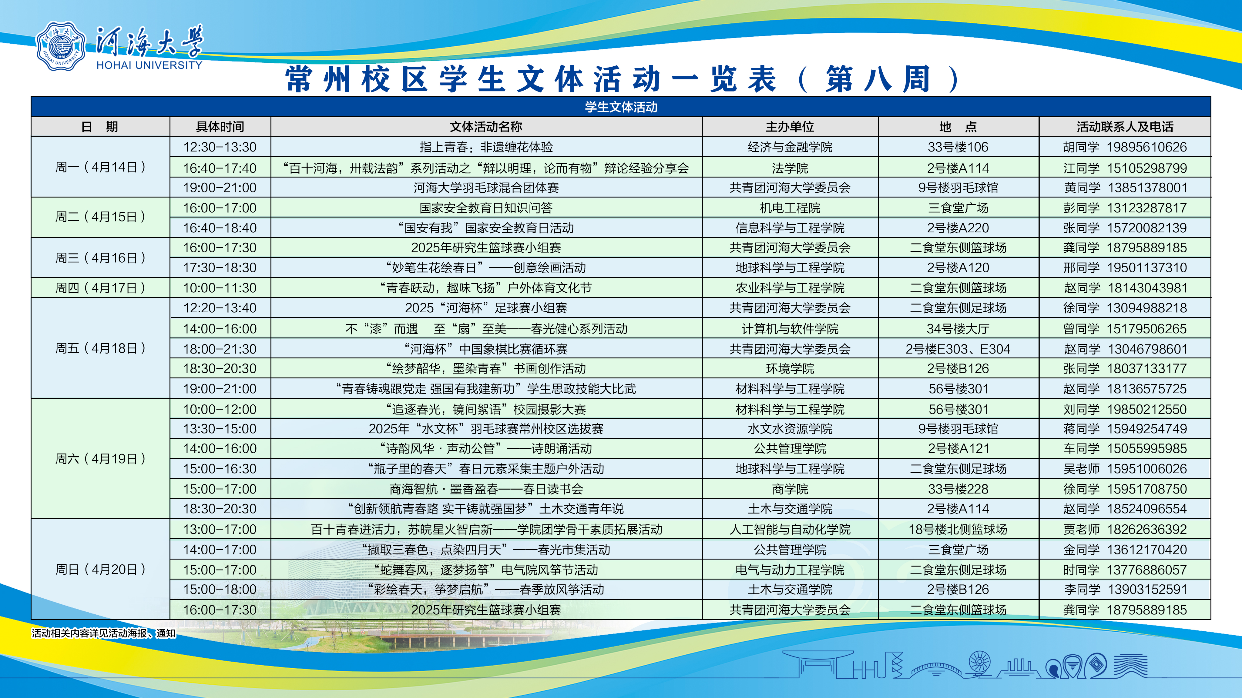 常州校区学生学术活动、文体活动相关安排(第8周)
