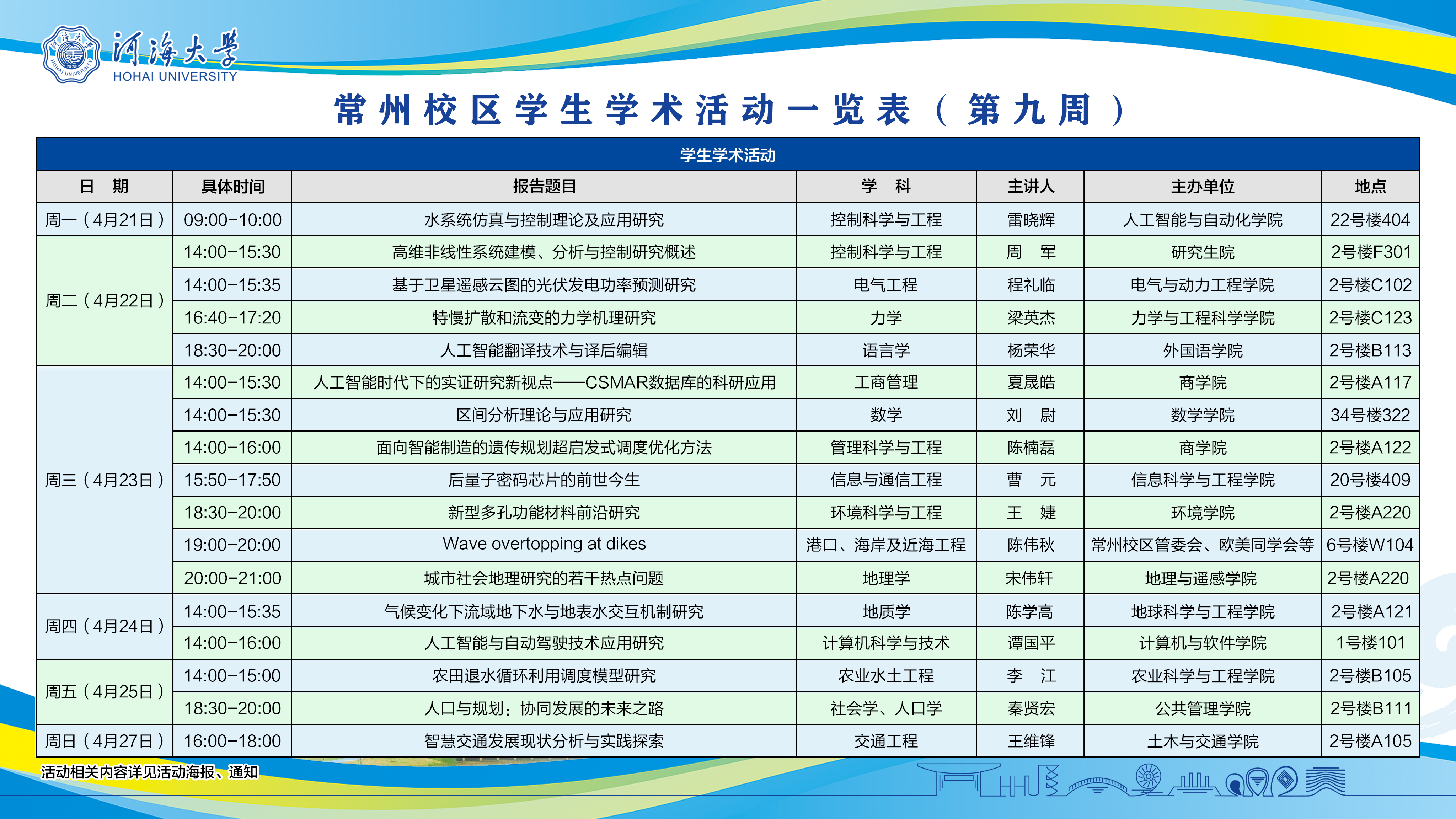 常州校区学生学术活动、文体活动相关安排(第9周)