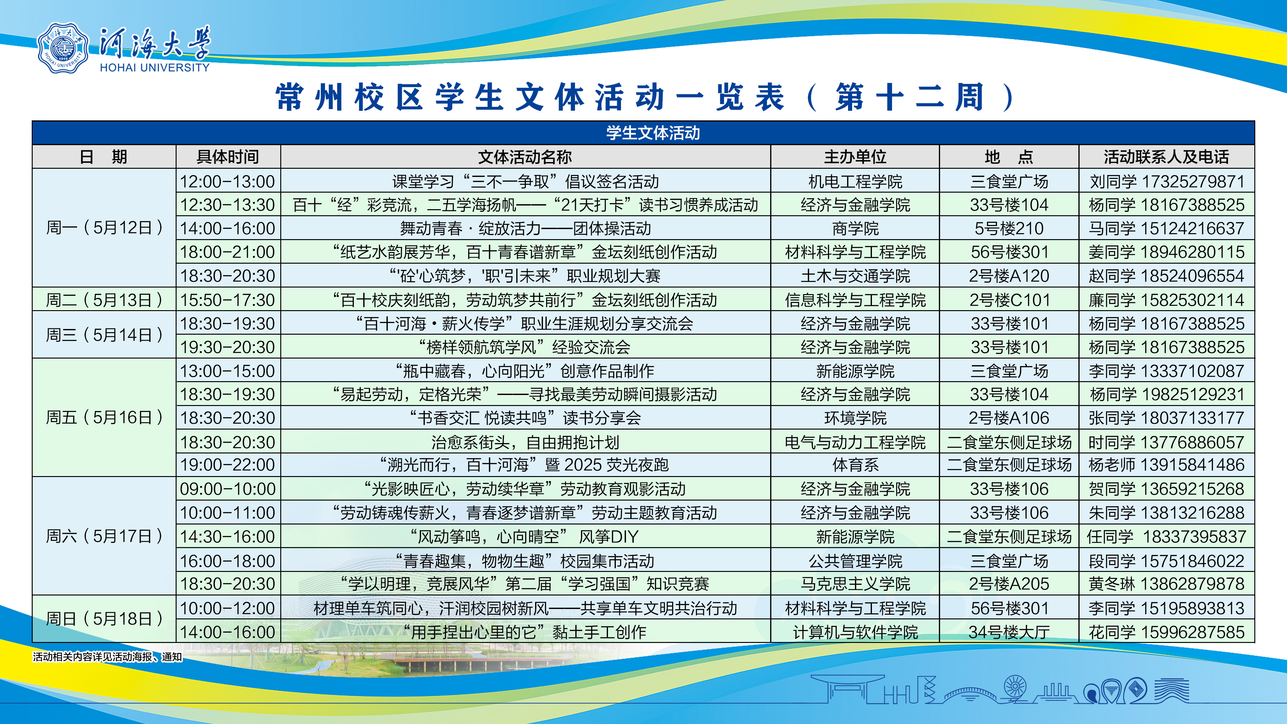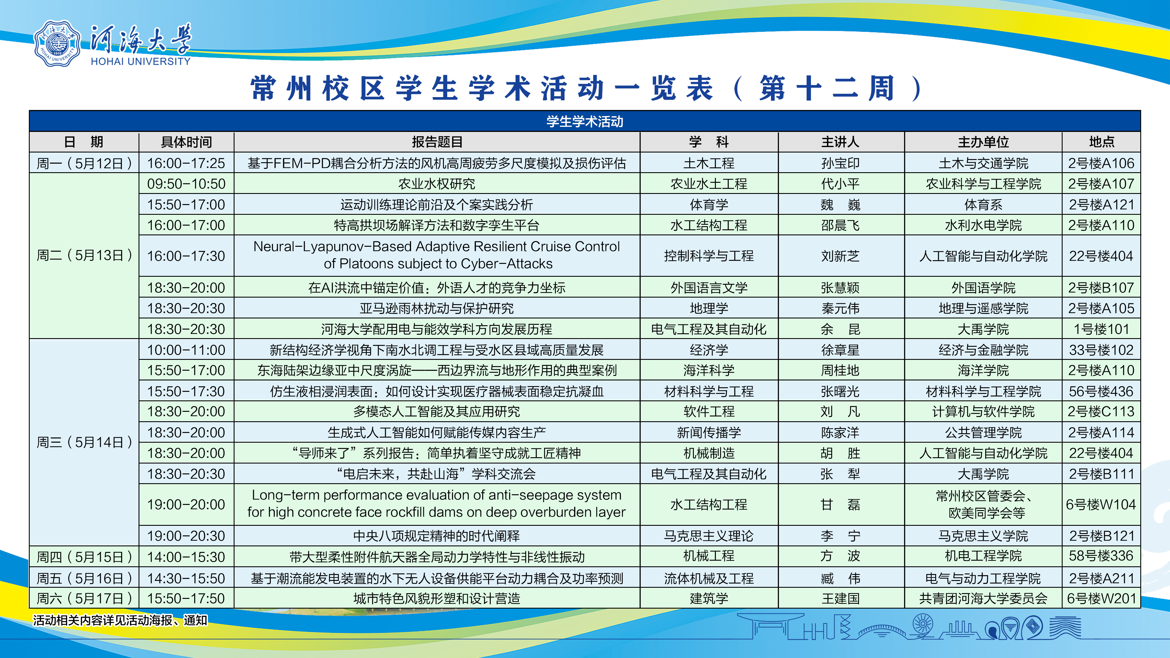 常州校区学生学术活动、文体活动相关安排(第12周)