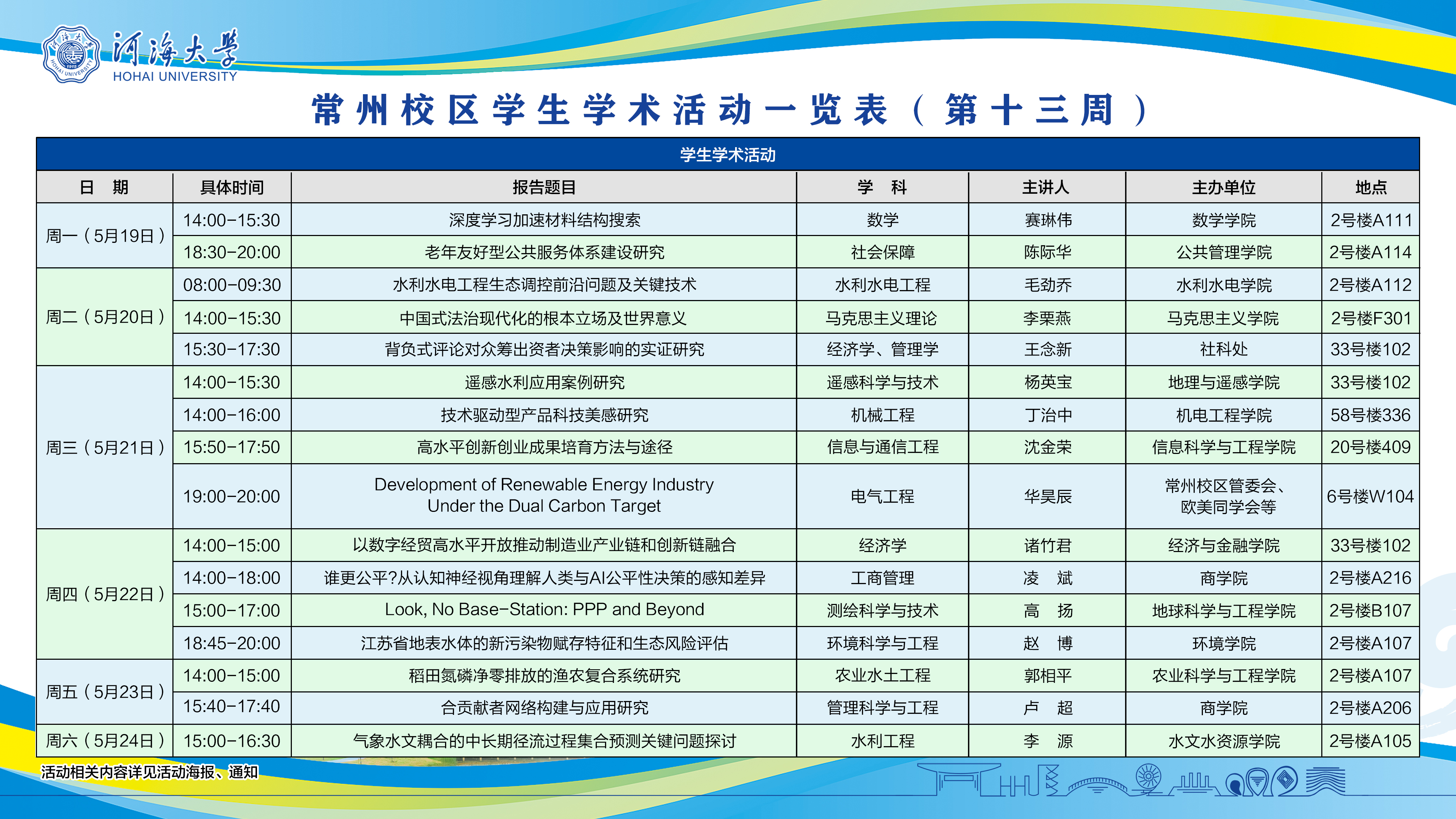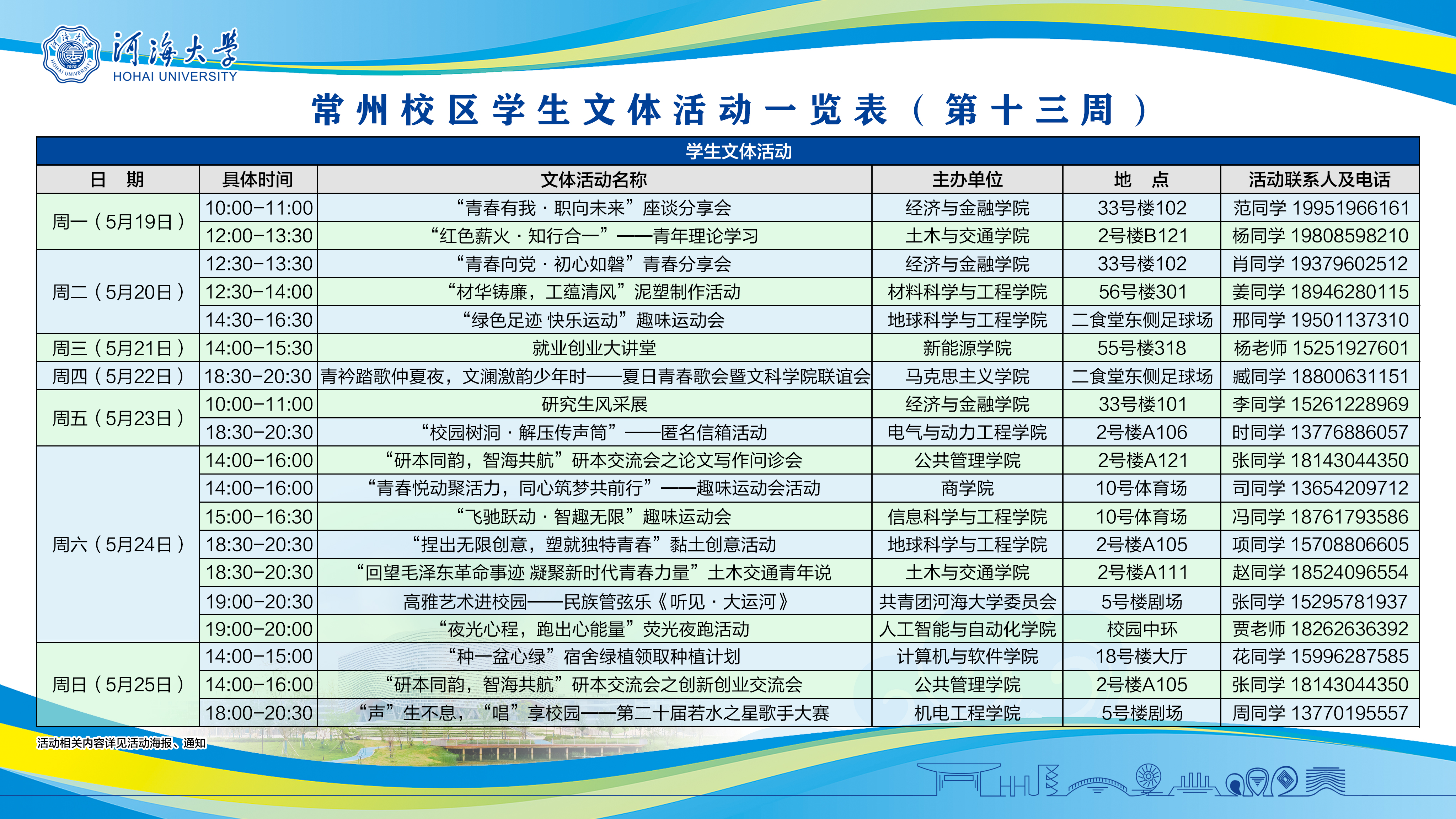 常州校区学生学术活动、文体活动相关安排(第13周)