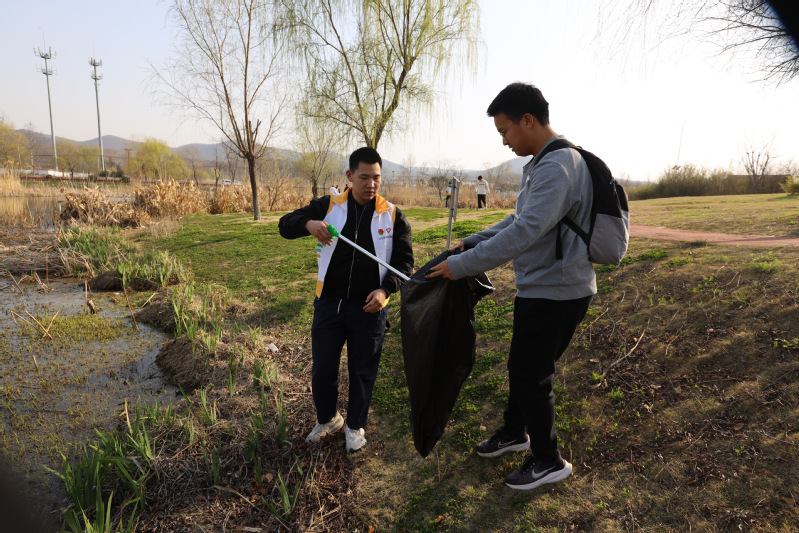 最后,本次主题团日活动以“河”我一起守护母亲河志愿活动结束,同学们巡河劳动的身影随落日的余晖一同为本次活动铺满灿烂的色彩。