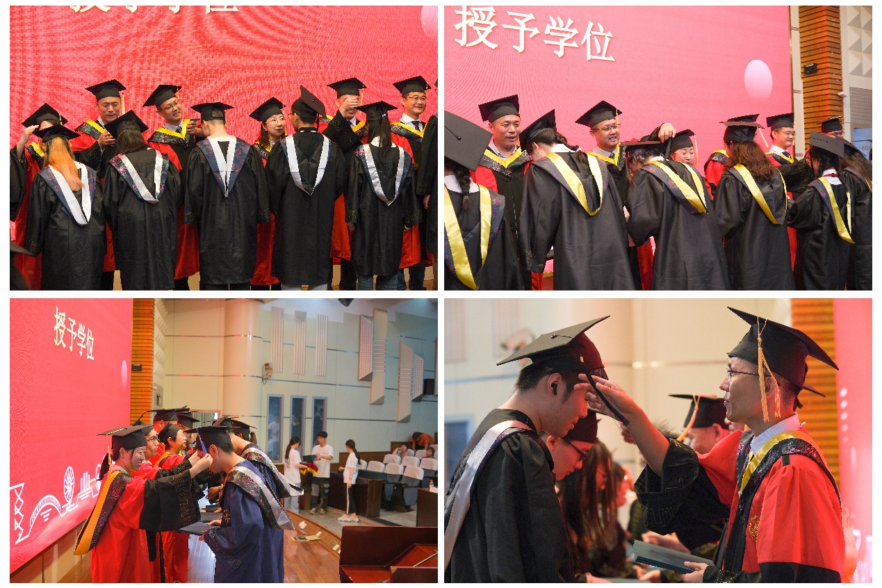 学院领导、系主任代表、班导师代表、教师代表为2024届毕业生颁发学位证书并拨帽穗。
