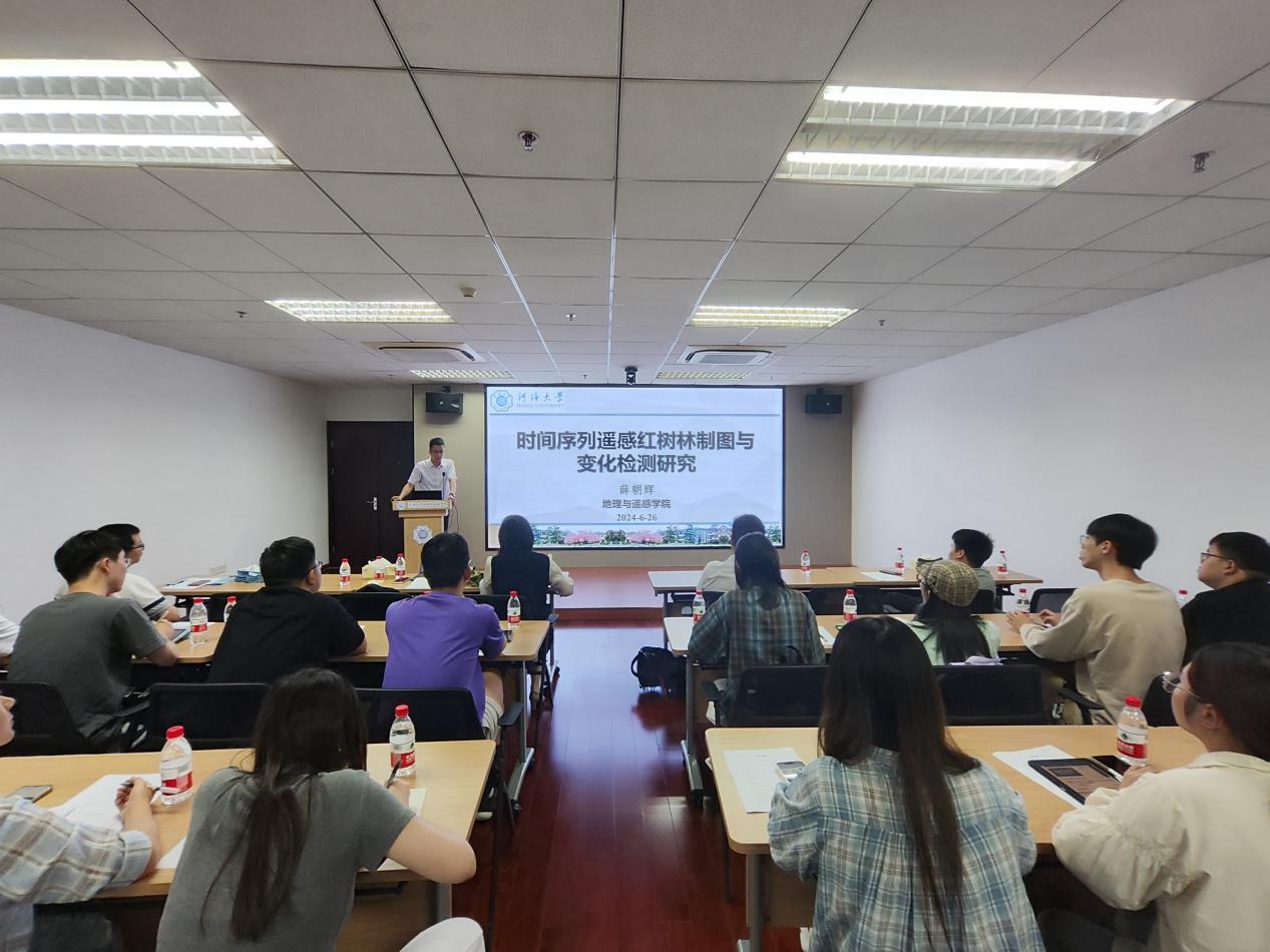 随后,我院周亚男老师作了“地块尺度的精准农业遥感方法与应用”的学术报告,在理论上深化地块尺度上作物生长过程遥感时序表达的机理探索,在实践上为南方地区开展精准遥感应用提供关键技术支撑与参考;我院薛朝辉老师也从研究背景、问题与思路、代表性工作、总结与展望四个方面作了“时间序列遥感红树林制图与变化检测研究”的学术报告。在场师生认为通过学习两个报告,收获满满、受益匪浅。