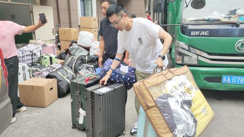 2022级本科生及2023级硕士生共计150余人,顺利完成了从常州校区到江宁校区的搬迁任务。院长周丰,党委副书记、副院长金佳鑫,学院办公室主任辛亮亲临现场,深入学生宿舍,详细了解搬迁进展,对同学们的辛勤付出表示肯定,并亲切叮嘱大家在暑期离校期间注意个人安全,留校的同学要合理规划时间,推进学业进展,确保学习与休息两不误。年级辅导员雷一帆全程参与搬迁工作,做好行李摆放指导、人员调度引导,确保搬迁工作有序开展。年级学生骨干配合完成所有搬迁学生的定制纸箱、编织袋的统一发放,保障学生顺利进行行李打包封装。