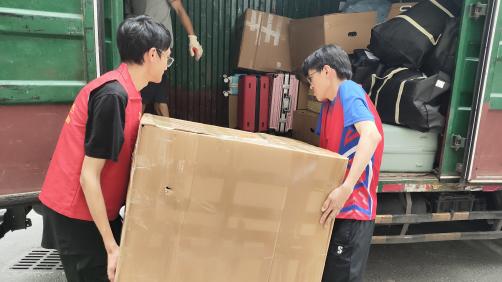 2022级本科生及2023级硕士生共计150余人,顺利完成了从常州校区到江宁校区的搬迁任务。院长周丰,党委副书记、副院长金佳鑫,学院办公室主任辛亮亲临现场,深入学生宿舍,详细了解搬迁进展,对同学们的辛勤付出表示肯定,并亲切叮嘱大家在暑期离校期间注意个人安全,留校的同学要合理规划时间,推进学业进展,确保学习与休息两不误。年级辅导员雷一帆全程参与搬迁工作,做好行李摆放指导、人员调度引导,确保搬迁工作有序开展。年级学生骨干配合完成所有搬迁学生的定制纸箱、编织袋的统一发放,保障学生顺利进行行李打包封装。