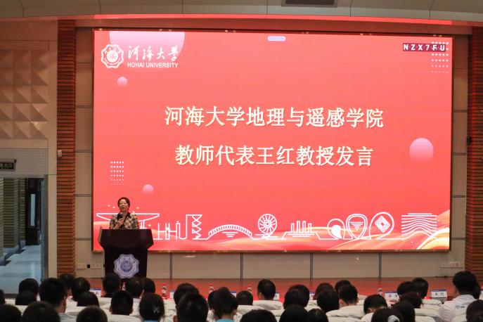 接下来,教师代表王红老师发表了讲话。她分享了自己与学生共同学习、完成科研任务的经历和心得,并期望同学们能够珍惜宝贵的大学时光,广泛吸收各类知识,同时培养创新思维和实践能力。