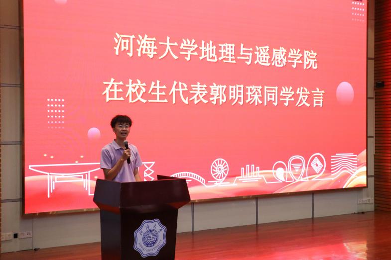 本科生新生代表薛羽轩同学在发言中表达了自己对未来的憧憬提升专业素养的同时,也会培养自己各方面的能力,勇担使命,成为国家和社会所需要的栋梁之材。最后,他激励同学们在各自专业方向上努力拼搏,为建设更加美好的社会主义现代化强国而努力奋斗。