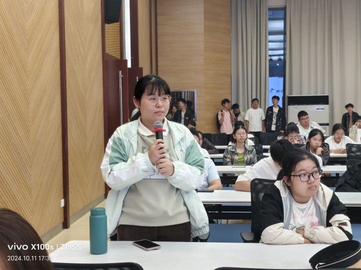 同学们在互动环节积极提问,就“如何为大一新生规划参赛方向?”和“遥感专业如何选择合适项目?”等问题与冯老师进行了深入讨论。冯老师指出,新生可以从课程作业和日常观察中找到灵感,并鼓励大家提早准备,找到适合自己的赛道,为比赛做好充分的规划和布局。