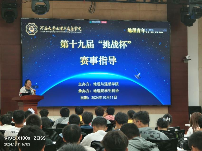 最后,学院团委书记雷一帆对本次动员会进行了总结,并感谢冯芸老师的悉心指导。这次动员会为地理院营造了浓厚的科研竞赛氛围,不仅在2024级本科新生心中播下了科研竞赛的种子,还为高年级本科生指明了发展方向。通过多维度、多层次的讲解与互动,进一步激发了同学们的学习热情,加深了他们对科研竞赛的理解与认识。
