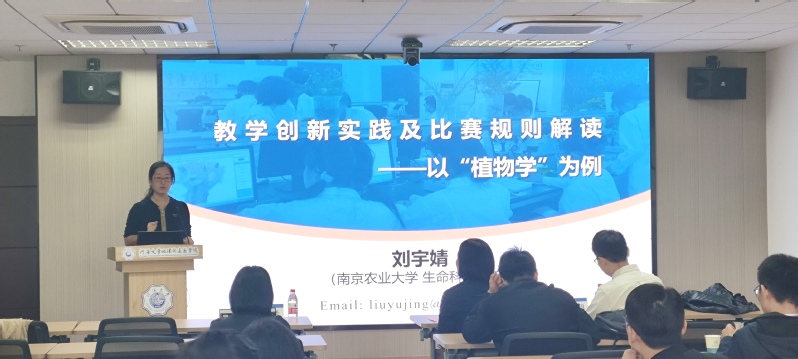 刘宇婧老师以“植物学”课程为例,从理论教学和实践教学两个维度出发,重点解读了教创赛比赛规则,聚焦教育创新和实践探索。通过剖析教育理念、教学内容的创新性、教学方法的有效性、教学工具的应用性以及实践效果的可复制性,结合自身教学经验,分享了教学创新的实践与成果。