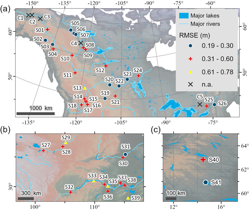 图2 全球河湖虚拟站水位时序产品验证站点精度