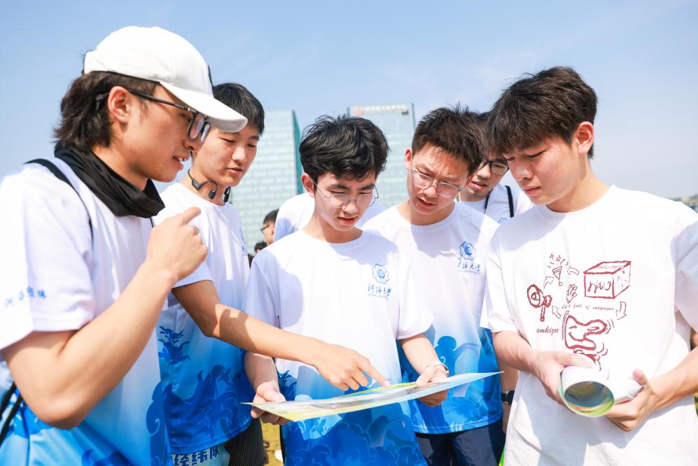 上午9时,悠湖中心草坪上响起出发哨声。河海经纬队的10名队员紧握地图,坚定出发,大胆选择距起点最远的8号打卡点作为首战目标,成功避开密集人流,为后续任务赢得关键时间差。在后续的七个打卡点中,河海经纬队势如破竹,凭借提前腾出的时间裕度,环环相扣,时间红利催生滚雪球效应,领先其他队伍完成,强势斩获亚军。从分析任务到分工执行,每一步都是队员的默契与智慧的象征,青春的热浪,能蒸腾出一片属于河海奔跑者的云霞。