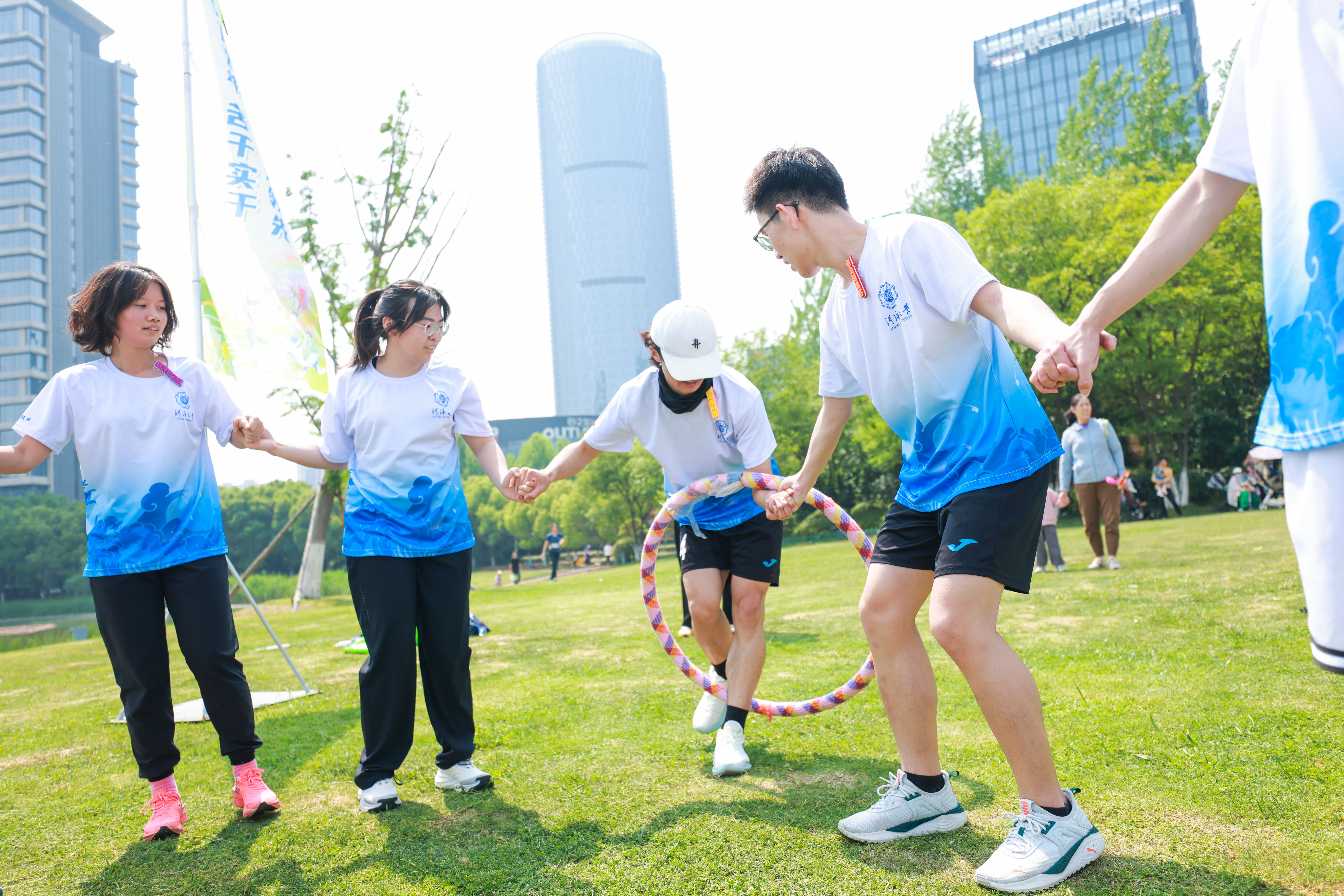 上午9时,悠湖中心草坪上响起出发哨声。河海经纬队的10名队员紧握地图,坚定出发,大胆选择距起点最远的8号打卡点作为首战目标,成功避开密集人流,为后续任务赢得关键时间差。在后续的七个打卡点中,河海经纬队势如破竹,凭借提前腾出的时间裕度,环环相扣,时间红利催生滚雪球效应,领先其他队伍完成,强势斩获亚军。从分析任务到分工执行,每一步都是队员的默契与智慧的象征,青春的热浪,能蒸腾出一片属于河海奔跑者的云霞。