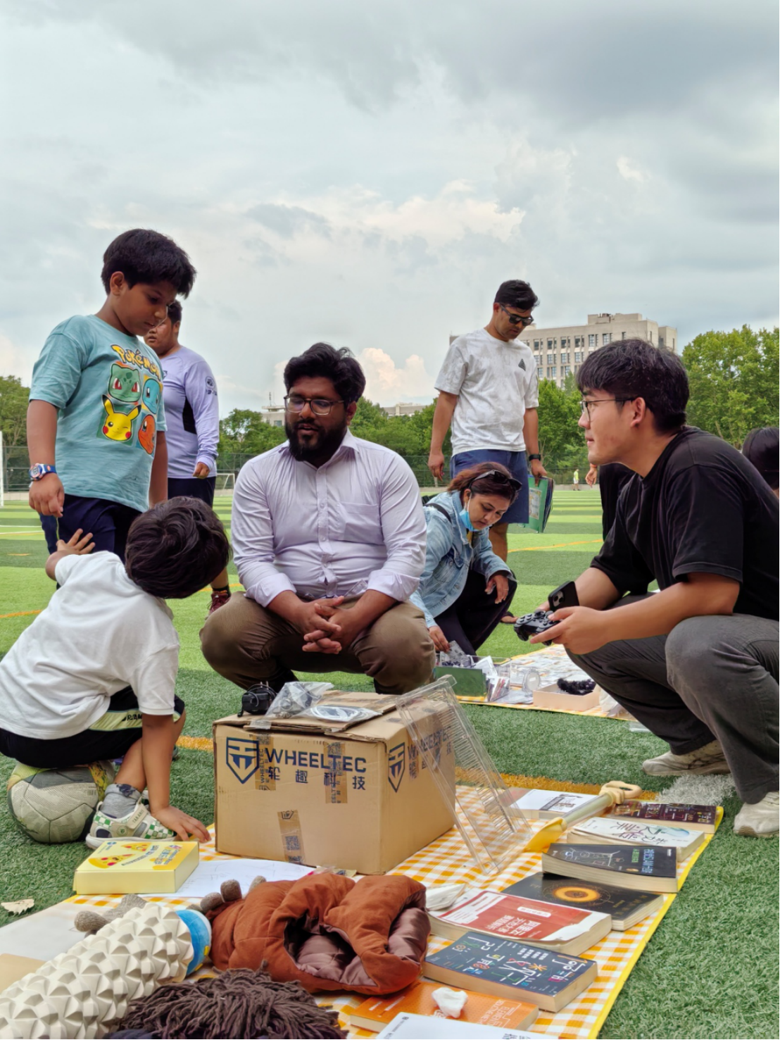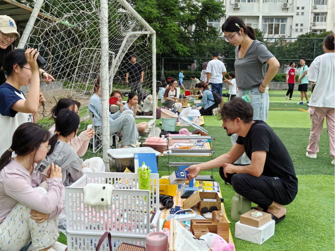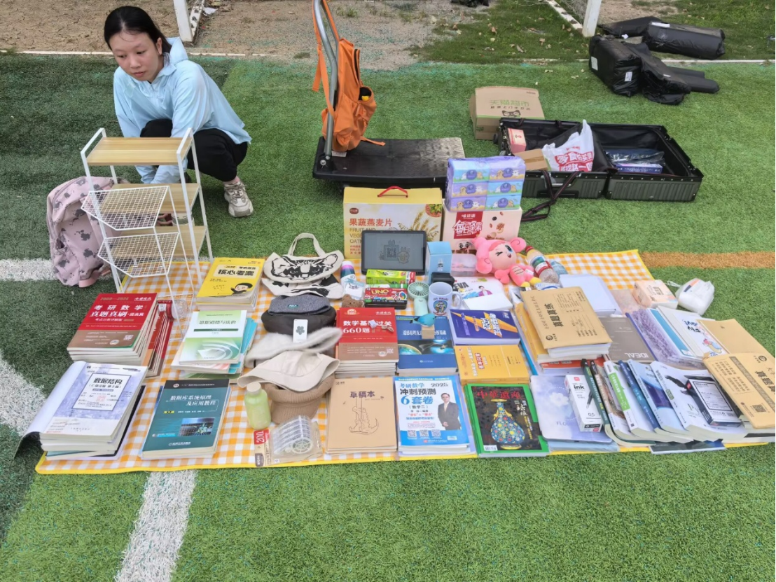 活动现场,绿茵场上人头攒动,热闹非凡。最引人注目的二手物品集市,宛如一条青春的传送带。毕业生们将承载着大学时光记忆的书籍、学习用品、生活用品整齐陈列,学弟学妹们流连在每个带有青春回忆的独特摊位,挑选心仪好物。一本本写满笔记的专业课本、一个个陪伴无数日夜的台灯,在流转间完成了知识与经验的传递,延续着青春的故事。文创与手作展区同样精彩纷呈,同学们发挥奇思妙想,将地理与遥感元素融入作品,精美的手绘地图、创意十足的遥感卫星模型摆件,不仅展现了学子们的艺术才华,更彰显出学院特色文化的深厚底蕴。