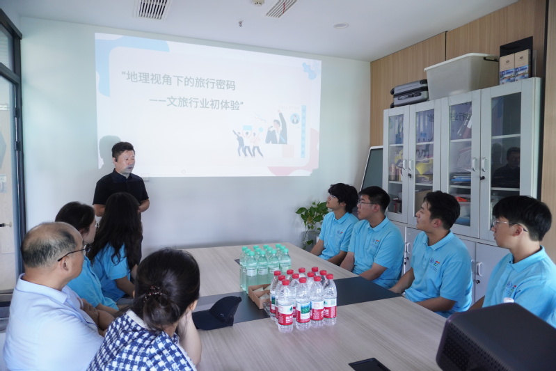 实践尾声,团队成员走进旅游企业,了解了旅游地理学的相关应用,从自然地理、人文地理与现代旅游元素的深度融合,到LBS技术在行业中的实际应用,感受地理信息技术如何深刻重塑现代服务业。同学们在现场观察到,实时定位与路径规划不仅提升了监管效率,也使服务流程更加透明,避免了传统人为因素带来的不确定性。亲身感受到科技对传统旅游模式的推动,许多成员表示,“真切体会到地理信息不再只是地图上的符号,而是能切实优化资源分配、提升用户体验的关键工具。”