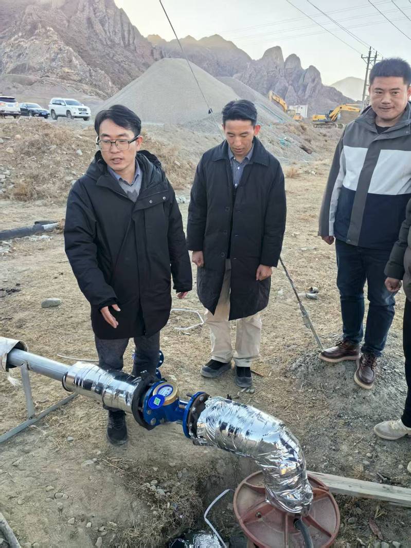 图1 鄢波正在指导拉萨纳龙建筑材料有限公司取水计量的冬季防护工作