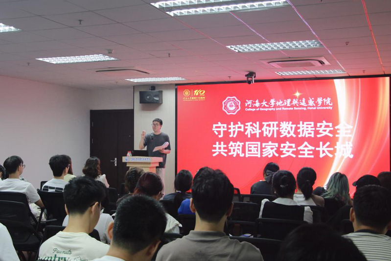 此外,学院还特邀中国电子科技集团公司第二十八研究所保密办公室主任杨悦,为研究生新生开展科研与国家安全主题讲座。凭借十余年保密工作一线经验,杨悦从国家战略、学科发展与个人成长三个维度,深刻阐释了保密工作的重要意义,并以案例与理论相结合的方式,为新生筑牢科研保密“第一道防线”。他系统解读了国家秘密分级制度,结合遥感数据泄露、涉密图纸流转不当等真实案例,生动剖析信息泄露的严重危害,使同学们对保密责任有了直观而深刻的认识。通过互动答疑,解答现场同学们的各种疑问,有效强化了新生的国家安全意识与保密担当。