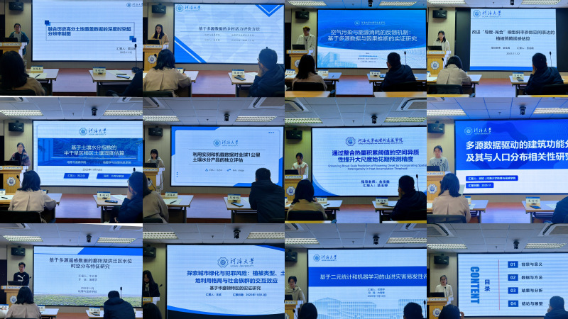 在学术报告环节中,同学们的报告主题聚焦地理学与遥感科学的前沿领域,涵盖从宏观生态模拟、城市空间解析到灾害风险评估等多个关键方向,充分体现了多源数据融合与空间分析技术在地理认知中的深度应用。每位汇报人以其扎实的研究工作、清晰的逻辑陈述与专业的幻灯片展示,赢得了在场师生的高度关注。在问答环节,评审专家就研究方法的创新性、数据处理的严谨性以及成果的科学价值等方面提出了深刻而富有建设性的意见,汇报人也以充分的准备和沉稳的应对,展现出优秀的研究素养与思辨能力。思想的交锋与智慧的碰撞,让整个会场沉浸在求真务实的学术氛围之中。