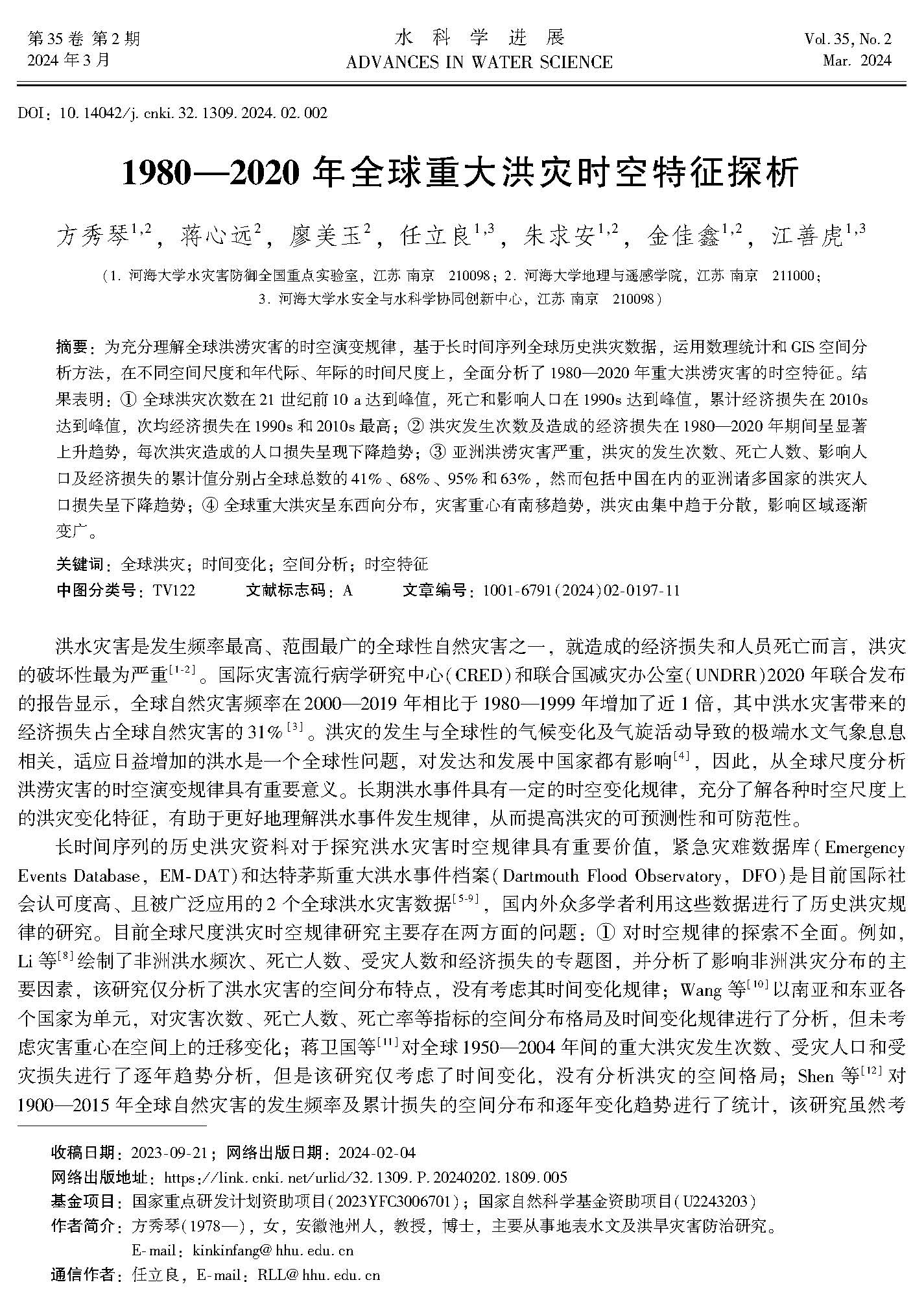 2006年7月-至今 开云电竞网 水文院、地球院、地理与遥感学院,讲师、副教授、教授