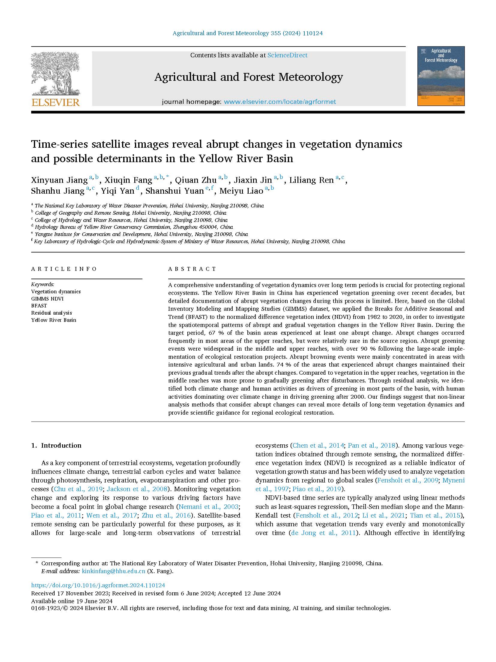 (8) Li Xiuneng, Wang Hong*, et al., Yellow river delta shelter forest dynamic and degradation factors detection in different phenophases, Plant and Soil, 2022, 479: 233-250。