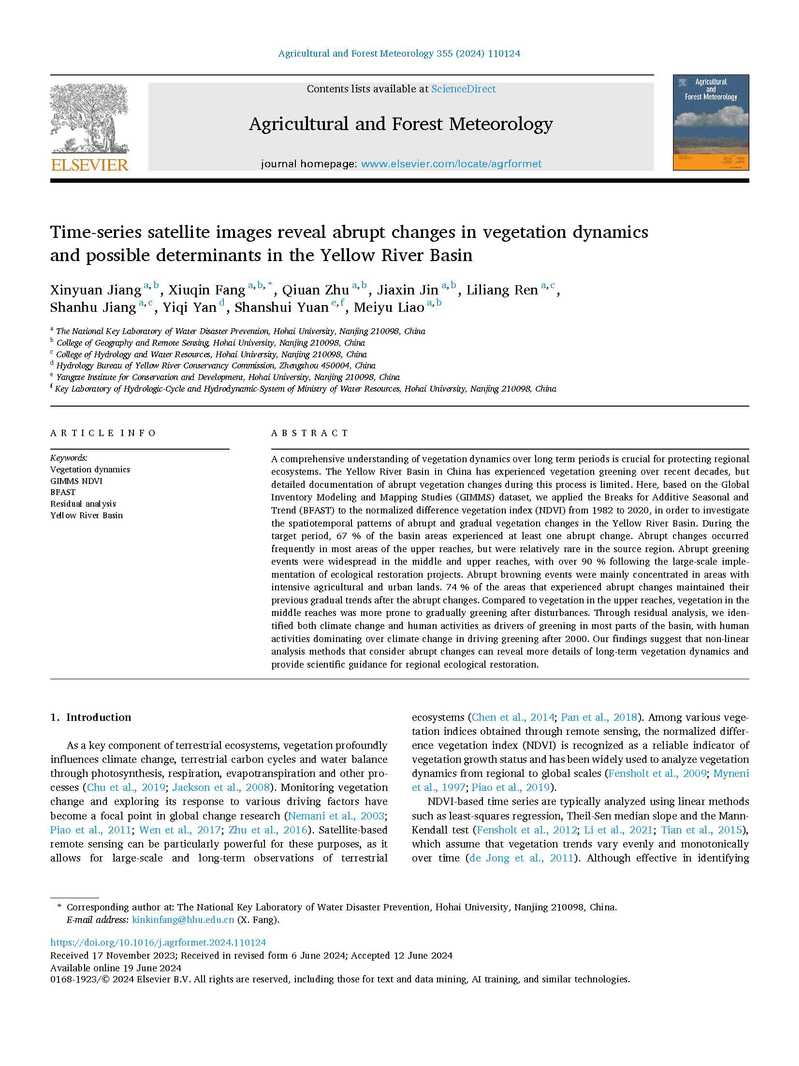 (6) Li Xiuneng, Wang Hong*, et al., Ecological restoration evaluation of afforestation in Gudao Oilfield based on multi-source remotesensing data, Ecological Engineering, 2023, 197: 107107.