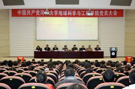 | 中共开云电竞网地球科学与工程学院党员大会胜利召开 | | 2010年4月16日,在雄伟的国歌声中,地球科学与工程学院党员大会在闻天馆108隆重召开。校党委副书记兼纪委书记陈德奎同志、党校常务副校长兼组织部副部长钱朝阳同志出席了会议,党员大会的议题为选举产生地球科学与工程学院第一届党委委员及出席学校第十二次党代会代表。会议由院党委副书记张秋野同志主持,冯广将同志作工作报告。 | |