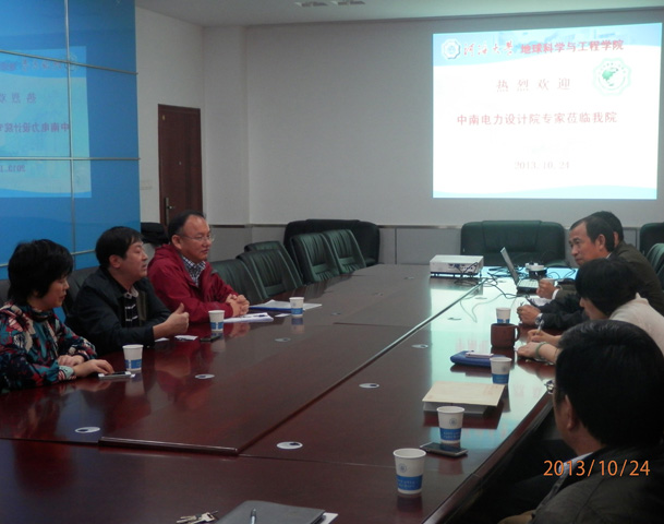 10月24日,正值我校隆重庆祝建校98周年之际,中国电力工程顾问集团中南电力设计院勘测工程公司副总经理黄传华率主任工程师程正逢及综合办主任彭玉环一行三人来我院访谈,科研背景相似、报国立业之志相投,宾主双方相谈甚欢。黄经理首先表明来意,并仔细介绍了中南电力设计院勘测工程公司目前的主营业务。我院周志芳院长代表学院表示了热情的欢迎,向客人介绍了我院的概况,何秀凤副院长根据客人提出的科研问题做了认真的回答,王锦国副院长介绍了我院学生的培育情况,我院各研究所所长参加了座谈。就双方关心的科研课题和中南电力设计院正在进行的业务,黄经理等与院长和所长们进行了深入的探讨,双方都看好与对方合作,开展今后的人才培养、科研工作等。 |