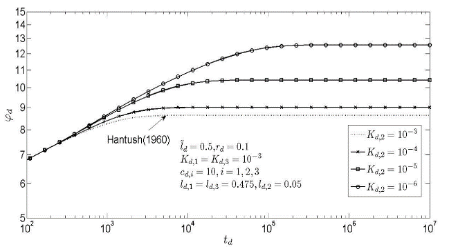 2014年4月24日,在我院报告厅庄超硕士做了《弱透水层释水及变形特性研究》学术报告,他首先介绍了硕士阶段的主要研究成果:冲击平原所构成的复杂含水层系统的结构、分布特点以及水力学参数特性;分析了弱透水层释水量与开采量之比以及弱透水层的水力响应时间,并以苏锡常地区为例计算了弱透水层释水量占该地区总开采量的比重;采用Modflow-2000模拟越流含水层系统;通过解析解推导讨论了抽水条件下弱透水夹层对含水层降深的影响(见附图);他还介绍了弱透水层变形试验。
