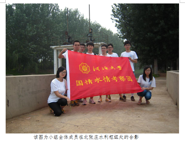 生态谱赵韵 水网系都魂 --地学院邯郸市实践小组奔赴第二天 七月七日上午,邯郸水利局处长马宏宙携实践小组组长马慧琳,副组长沙晨以及全体小组成员奔赴魏县北张庄进行水利枢纽的考察。同日下午,全体相关人员去北张庄泵站进行调查,感性了解水利工程在防洪除涝,灌溉兴利,改善生态等方面的综合效果。 上午,大家乘坐近一个小时的车程抵达邯郸周边的魏县北张庄。马宏宙处长带领大家一路来到北张庄的水利枢纽处,考察水利枢纽工程,渠道、渡槽、泵站、闸涵等水工建筑物,感性了解各类水利工程所发挥的巨大作用。期间马处长通过地图讲解,配合实地的水利观测考察,让大家更为深刻地感受到北张庄水利枢纽的工作原理及其对本地、对周边的巨大生态、经济效益。该水利工程建于1968年,水利枢纽坝上五个“毛主席万岁”的大字告诉大家该工程的历史意义。由于河北邯郸地势西高东低三级阶梯的原因,该水利水位落差较低,所以发电只能供山区部分用户使用,但它带来的经济效益无疑是巨大的。 下午大家整顿后到达北张庄水利工程的心脏——泵站进行参观。工作人员为大家进行了较为详细的介绍,期间大家对水利泵站的工作原理产生兴趣并进行了讨论。国家大小型的水利工程都必须要有高效先进的水泵作为水利工程的工作动力。为此大家一致认为,学好本科期间的科学文化知识才是硬道理。 经过一整天的魏县考察,大家深刻感受到了水利工程的建设对于民生,环境,经济等方面的巨大效益。马处长的讲解更让大家认识到理论结合实际的重要作用。努力打好大学本科期间的科学文化基础,才能为中国的水利建设作出实质性贡献。