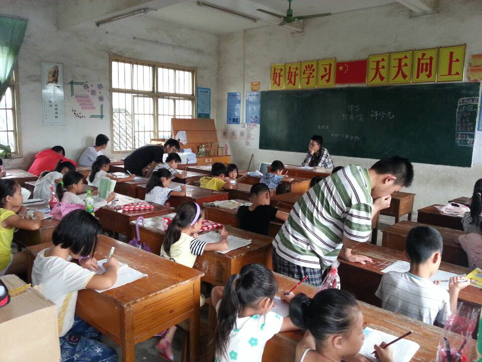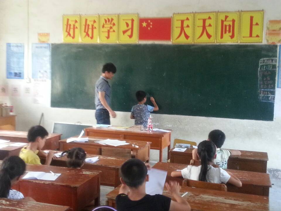 用知识打开心灵的窗户 7月9日,大雨磅礴,但这阻止不了“爱聚河海,汇流柳州”支教小分队支教的征程,队员们依然和往常一样早早地起床。由于天气原因,小洲村道路泥泞不堪,为贯彻昨天陈校长强调的精神,做好安全防患措施,组长将队员们分成六个组,中午放学后,队员们将孩子们送到家门口。早上的两节课“老师”们和孩子们遨游在知识的海洋中,孩子们在科学知识的熏陶中深受启发,孩子们强烈的求知欲让队员很欣慰。 下午天气转晴,第一节课是作业辅导课,孩子们认真地做着暑假作业,队员们负责解决孩子们的问题,队员们认真负责,将孩子们呈现出的问题在第一时间解决,在这节课上孩子们的疑问得到了解决,相信他们在对待疑难问题上坚定的意志是他们人生中宝贵的一笔财富,希望他们在今后的学习和生活中继续保持这种精神,在自己人生的舞台上展现最美丽的舞姿。第二节是英语课,像小洲小学这样的山区小学,英语是孩子们的弱项,队员们了解到,小洲小学几乎不开设英语课,对孩子们谈及英语,谈语色变,很多孩子们对英语产生了恐惧。为了解决这一问题,队员们在早期做了大量的准备,将英语课程作为实践教学中的重中之重,同时在教学中注重方式方法,以激发孩子们学习英语的兴趣,鼓励孩子们在英语学习中多说多读多写,启发孩子们独立思考,养成好的学习习惯。经过队员们的努力,下午的英语课进行的异常顺利,孩子们由胆怯变得大胆,享受着外语学习的快乐。 通过今天与孩子们的互动,队员们也学到了很多知识,晚上,小组对今天的实践工作做了细致的总结,为以后的支教提供宝贵的经验!