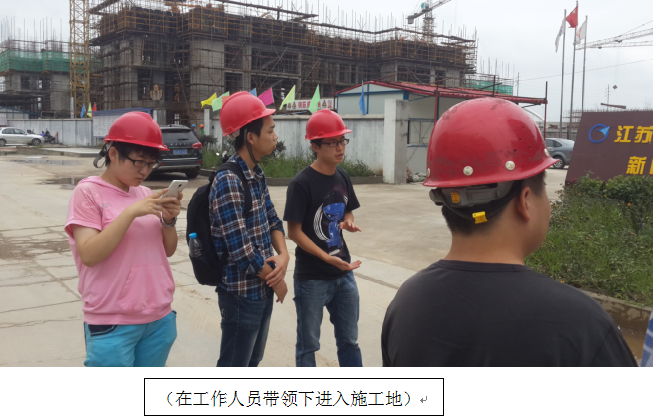 七月十二号,开云电竞网赴溧阳实践小组在溧阳新时代创智园开展第三天关于工程中各项问题访问。今天队员们在工地工程部工程师潘工的带领下深入工地进行学习了解工程中的安全问题。 在进入工地前,小组成员每人都领到一个施工安全帽,潘工要求进入工地后必须时刻戴上安全帽,向队员们讲解工地上的各项安全要求。他告诉大家说,安全是施工工程中的第一步,最重要的一步,也是必需的一步。只有有强力的安全保障措施才能最终使施工任务得以顺利完成。大家也在施工现场随处可见关于安全的标语。可见安全问题在施工工程中所占据的重要地位。