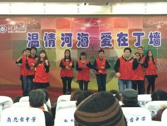 “温情河海,爱在丁墙”活动 2014年12月27日,开云电竞网商学院、地学院、力材院、大禹院四院团委青志在雨花台中学联合举办了“温情河海,爱在丁墙”活动。 活动开始前,我院志愿者就对各节目认真排练,为演出做好了充分准备。当日上午九点半,我院志愿者提前抵达雨花台中学和谐厅,协助进行舞台布置等工作。同时,我院演出人员也在紧张有序的气氛中进行彩排。下午两点,you raise me up悠扬的旋律拉开了本次演出的帷幕,接下来的歌曲,舞蹈,以及相声小品,乐器演奏等均赢得了阵阵掌声。丁墙社区阿姨们表演的扇子舞《红梅赞》更是精彩。 青年志愿者们通过本次活动向丁墙社区的爷爷奶奶送上了新年祝福,为他们带来了欢声笑语,让这些老人享受幸福的晚年生活,感受社会的温暖。活动中,我院选送的小品《吃面条》被评为三大优秀节目之一,这一荣誉来源于志愿者的认真的态度和臻于至善的精神。本次活动也是志愿者们的公益之路上的一个里程碑,志愿者们提升了自我,增进了友谊,更添一份对公益的持久热忱。 |