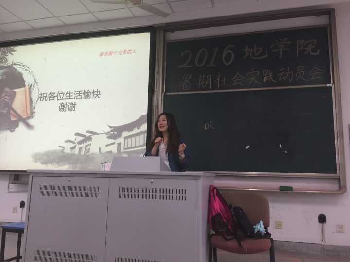 地学院召开2016年暑期社会实践动员大会 为做好2016年暑期大学生社会实践工作,地球科学与工程学院于2016年6月2日在高b211组织全体15级学生召开暑期社会实践动员大会。地学院团委书记郑茜丹老师、15级辅导员常孝廉老师应邀出席。 会上先由地学院团委实践部部长王佳卉同学对暑期社会实践相关问题进行讲解。接着,14级优秀实践团队队长肖敏慧同学和吴双红同学分别分享了自己对社会实践的认识及完成实践的方法。最后常老师总结发言,针对暑期社会实践向同学们提出充分认识和积极行动的两点要求。 本次动员大会使同学们对暑期社会实践有了初步的了解和认识,达到了宣传和介绍暑期社会实践的目的。每位同学都对未来的实践活动充满期待,希望通过社会实践活动锻炼自己、奉献社会,从活动中发挥自身价值,为实现中国梦贡献自己的力量。
