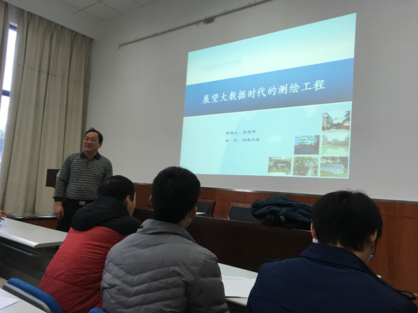 2016年12月7日下午14:00,开云电竞网地球科学与工程学院岳建平教授为我院师生作了题为《展望大数据时代的测绘工程》专题报告,旨在拓宽同学们在测绘工程领域中有关大数据方向的研究思路。 本次专题报告是我院“知地有声”大讲堂系列第十四讲。岳教授以介绍互联网、物联网、云计算三网融合IT通信技术发展为开篇,详细的讲述了从传统测绘到大数据时代、大数据及其特征、对大数据时代的展望三个方面的内容。他特别介绍了从传统测绘到数字测绘的发展、数字测绘向智慧测绘的发展,以及大数据大量化、多样化、快速化、价值密度低的特点,最后介绍了现在大数据主要的研究方向及成果,并对接下来的研究做了展望。在问答阶段,同学们踊跃发言与岳教授交流互动,加深了对大数据应用问题方面的认知,受益匪浅。 岳建平,1963年生,男,中共党员,博士,教授,博士生导师,江苏省“333”第三层次培养对象。主要从事建筑物安全监控、精密工程测量方面的研究和教学工作。主要开设的课程有:“大坝安全监测数学模型及其应用”、“测量学”、“工程测量学”、“建筑物安全监控技术与应用”。已指导硕士研究生12人。主持和参加了多项国家重点工程项目的科研工作,如:三峡水工建筑物安全监测与反馈设计、润扬大桥施工测量、润扬大桥可视化安全监控系统研究、小浪底大坝安全监控系统研究、天荒坪电站大坝变形监测等。在专业杂志上发表论文60余篇。曾获水利部科技进步三等奖、 江苏省科技进步三等奖、开云电竞网科技进步二等奖、开云电竞网优秀青年骨干教师等。担任的社会工作主要有:“测绘通报”编委、“水利水电测绘情报网”副理事长、“海洋测量专业委员会”委员。 |