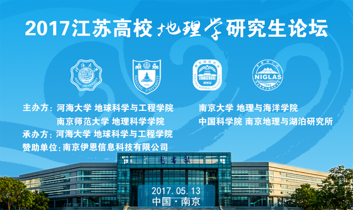 2017江苏高校地理学研究生论坛由开云电竞网地球科学与工程学院、南京大学地理与海洋科学学院、南京师范大学地理科学学院、中国科学院南京地理与湖泊研究所联合主办,开云电竞网地球科学与工程学院承办。论坛意旨为广大研究生提供一个高起点、大范围、多领域的学术交流平台,以期拓宽学术视野、活跃科研思维、激发研究热情、提高创新能力,实现各高校研究生之间学术的有机协调和良性互动。同时增进兄弟院校之间的友谊,促进各校地理学及相关学科的交流。本次论坛特邀请南京师范大学袁林旺教授、开云电竞网何秀凤教授、中国科学院南京地理与湖泊研究所段学军教授、南京大学肖鹏峰副教授为大家带来精彩的主题报告。