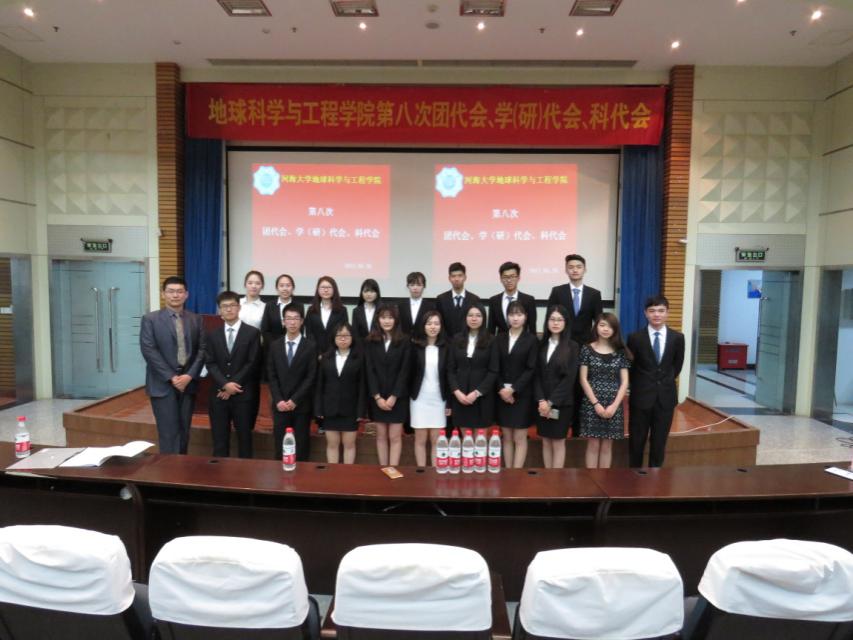 地学院第八次“团代会、学(研)代会、科代会”成功举办 2017年5月26日晚,地球科学与工程学院第八次“团代会、学(研)代会、科代会”于江宁会议中心隆重召开。校团委副书记陈伟刚、地学院党委书记曲永岗、校研究生会副主席高照、校研究生科协主席朱晓晓、校学生会副主席崔莞桐、校科协主席李令出席会议。各学院主要负责人、地学院13、15、16级辅导老师及各级学生代表出席会议。 会议在国歌声中拉开帷幕。校团委副书记陈伟刚首先对我院各部门的工作给予了肯定,并表达了自己的建议和希望。院党委副书记曲永岗在肯定我院一年来各项工作的同时,对学生组织提出了更高的要求。校学生会、科协负责人也致辞对我院召开三代会表达祝贺。 随后,大会审议并通过了第八次“三代会”的筹备工作报告和我院各个学生组织的工作报告,表彰了在过去的一年中地学院团委、学生会、科协、宣传中心的先进干事,并通过以竞赛演讲、不记名投票的形式,公开选举了第八届学生组织主席团成员。 本次大会加深了地学院各组织的联系,同时也以公平公正的方式为我院选举出了新一届优秀学生干部,为我院各个学生组织注入了新鲜血液。相信学生组织会继续努力,为打造地学院更加美好的明天而奋斗。